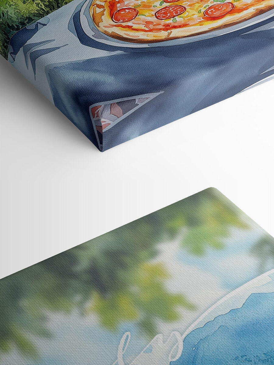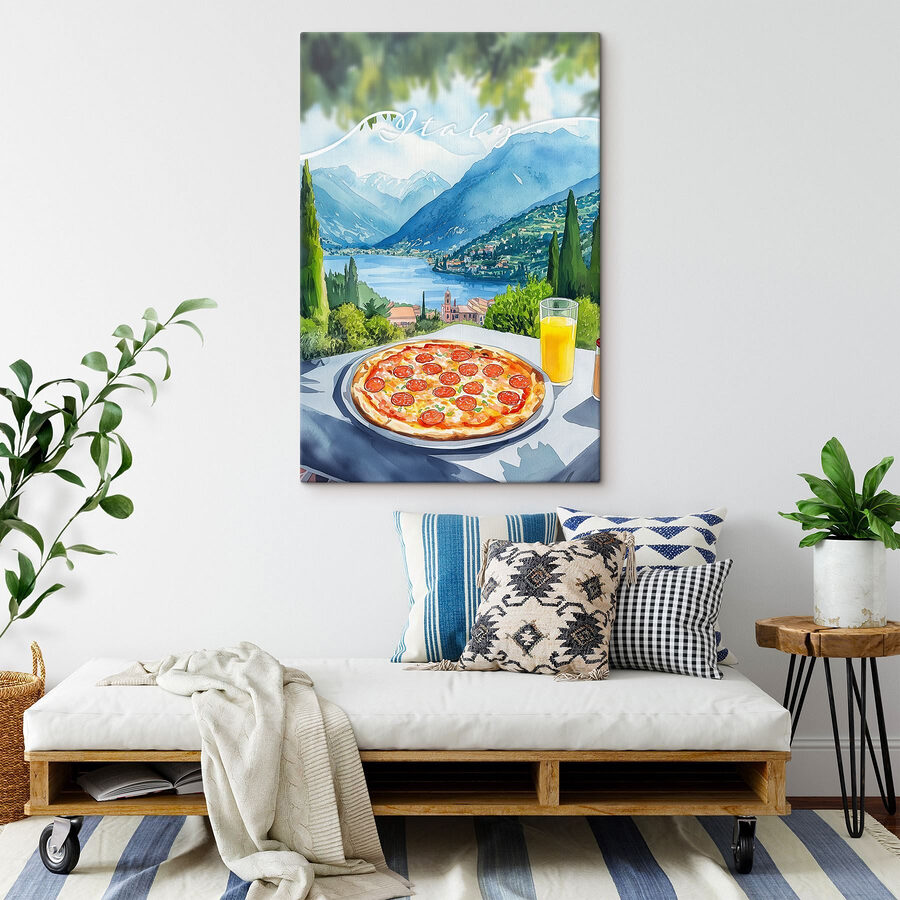 Wnieś kawałek włoskiego uroku do swojej przestrzeni dzięki temu wspaniałemu wydrukowi na płótnie! Wyobraź sobie słoneczny dzień, świeżą pizzę z pepperoni i orzeźwiającą szklankę soku na wspaniałym tle gór i drzew. To jak mini-wakacje za każdym razem, gdy przechodzisz obok! Idealny do kuchni lub jadalni, inspiruje do przytulnych spotkań i leniwych brunchów. Żywe kolory rozjaśnią pomieszczenie, sprawiając, że poczujesz się w nim ciepło i zachęcająco, jak w ulubionej kawiarni z najlepszym widokiem. Niech przypomina ci, że życie jest zbyt krótkie na wszystko oprócz pysznych chwil!