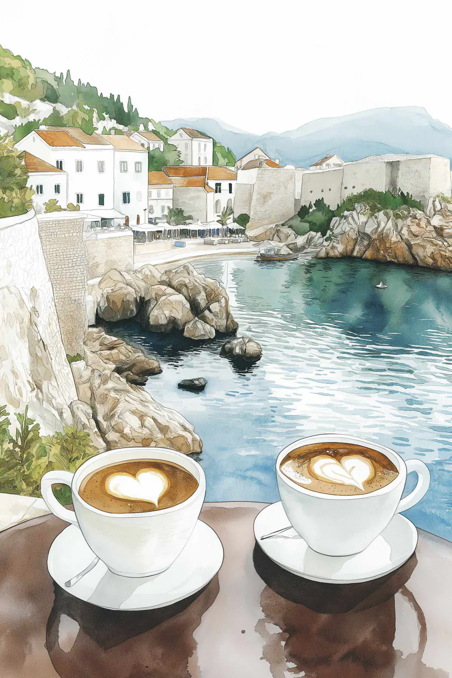 Wyobraź sobie kojącą scenę dwóch filiżanek kawy na rozgrzanym słońcem stole, z których każda zwieńczona jest pianką w kształcie serca. Ta grafika oddaje ten przytulny moment, wnosząc odrobinę ciepła i spokoju do Twojego domu. Wyobraź sobie siebie popijającego powoli kawę, delikatny szum fal w tle i aromat bogatej kawy wypełniający powietrze. To nie tylko fototapeta; to zaproszenie do zatrzymania się, głębokiego oddechu i delektowania się małymi radościami życia. Idealny do kuchni lub przytulnych zakątków, ten obraz na płótnie dodaje uroku i odrobiny miłości do każdej przestrzeni, zamieniając zwykłe dni w coś wyjątkowego.