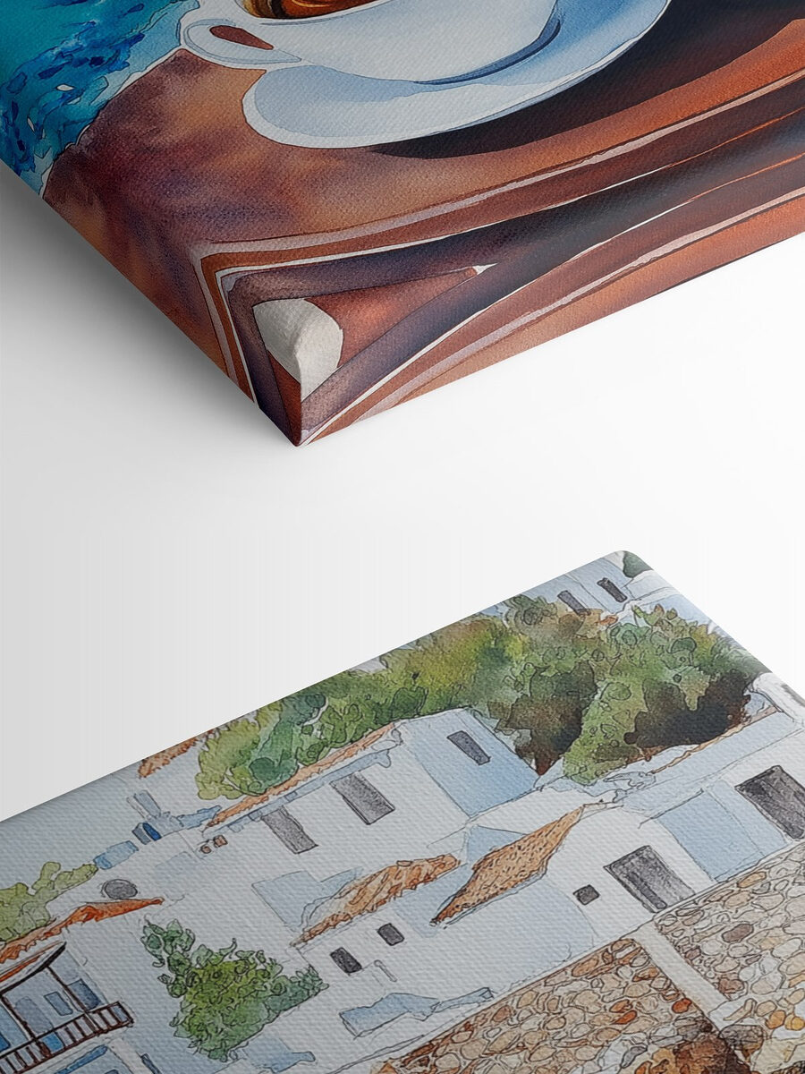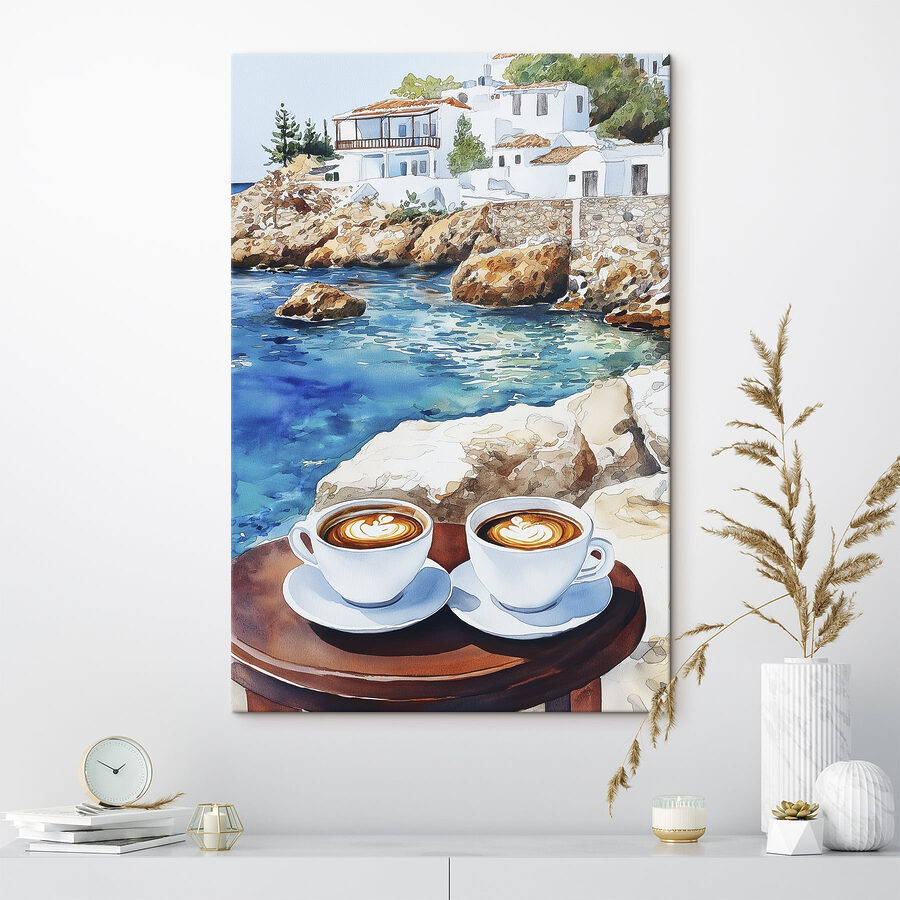 Wyobraź sobie, że zasiadasz w swoim ulubionym kąciku i spoglądasz na żywy wydruk na płótnie przedstawiający dwie parujące filiżanki kawy, ustawione na stoliku nad spokojnym zbiornikiem wodnym. Bogate brązy kawy tańczą figlarnie na tle lśniącej, błękitnej wody, wciągając cię w marzenia o skąpanych w słońcu brzegach i łagodnych falach. Wyobraź to sobie – poranne światło wpadające do środka i aromat kawy wypełniający powietrze. Ten przedmiot to coś więcej niż dekoracja; to zaproszenie do popijania i relaksu, dzielenia się spokojnymi chwilami z przyjacielem lub po prostu delektowania się odrobiną samotności. Idealny do pomieszczeń, które potrzebują odrobiny ciepła i uroku!
