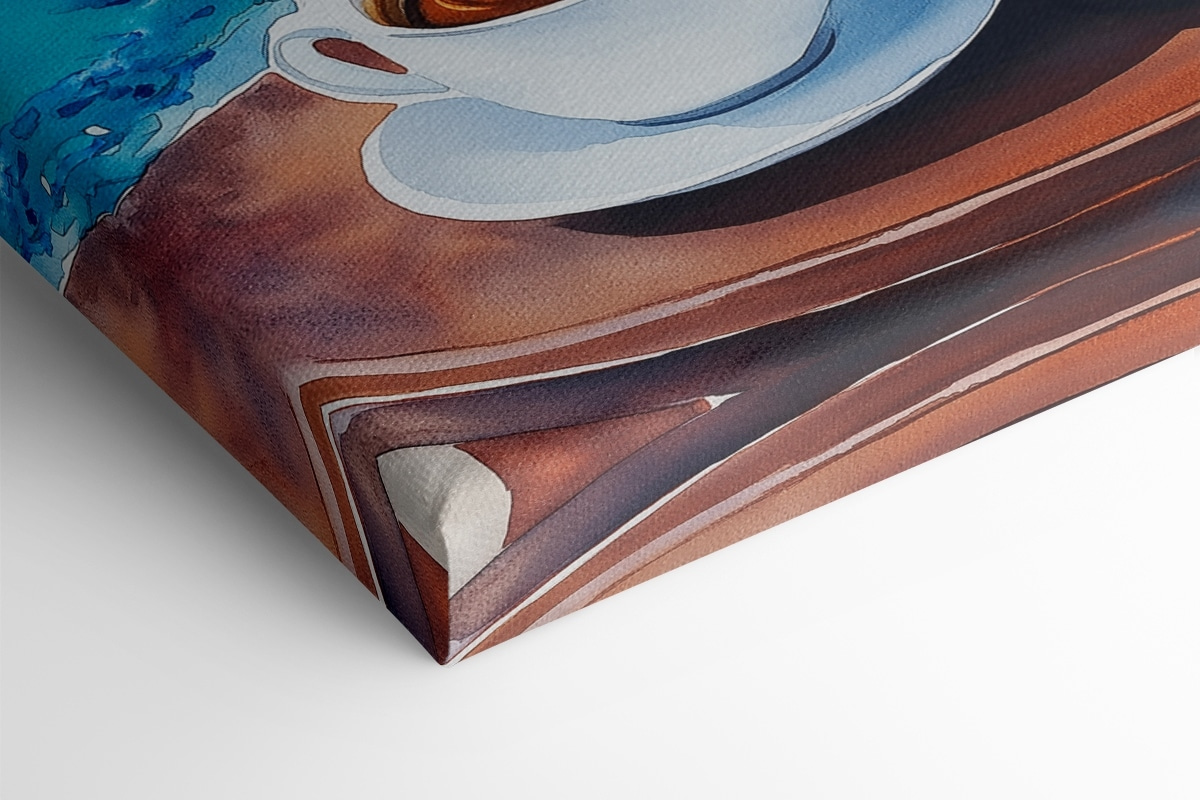 Wyobraź sobie, że zasiadasz w swoim ulubionym kąciku i spoglądasz na żywy wydruk na płótnie przedstawiający dwie parujące filiżanki kawy, ustawione na stoliku nad spokojnym zbiornikiem wodnym. Bogate brązy kawy tańczą figlarnie na tle lśniącej, błękitnej wody, wciągając cię w marzenia o skąpanych w słońcu brzegach i łagodnych falach. Wyobraź to sobie – poranne światło wpadające do środka i aromat kawy wypełniający powietrze. Ten przedmiot to coś więcej niż dekoracja; to zaproszenie do popijania i relaksu, dzielenia się spokojnymi chwilami z przyjacielem lub po prostu delektowania się odrobiną samotności. Idealny do pomieszczeń, które potrzebują odrobiny ciepła i uroku!