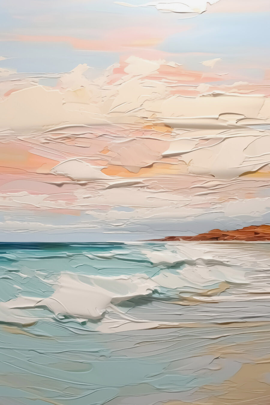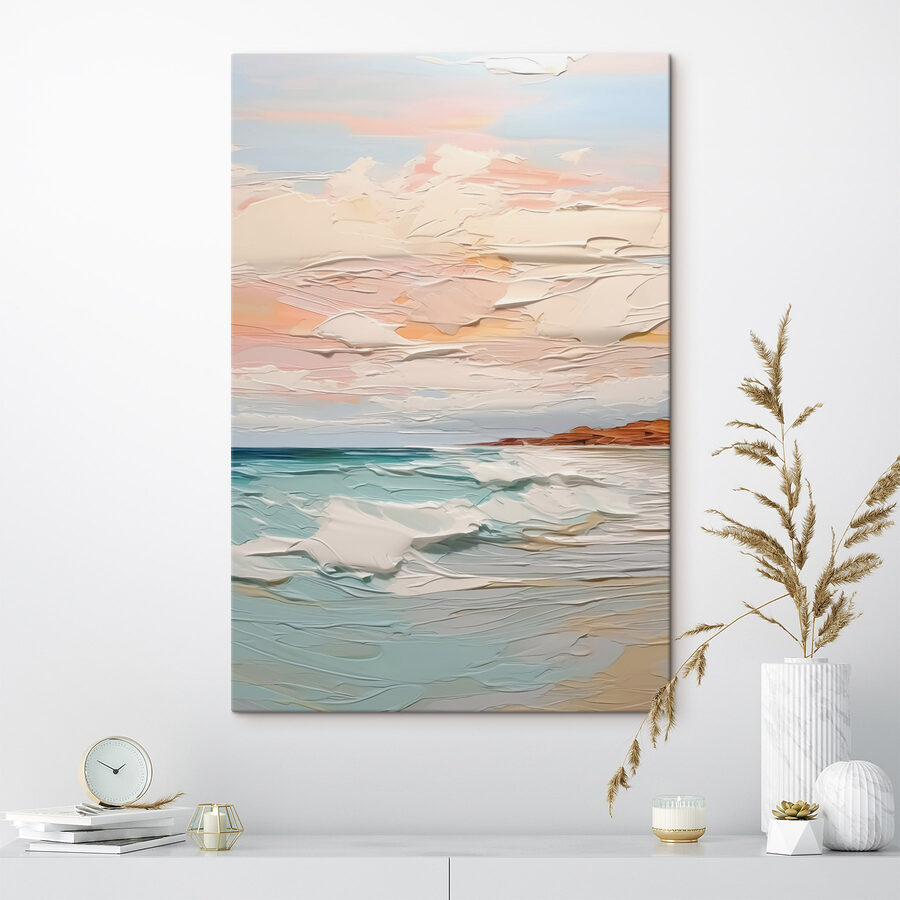 Wnieś spokojną atmosferę oceanu do swojej przestrzeni dzięki temu obrazowi na płótnie “Obraz plaży i oceanu”. Wyobraź sobie te delikatne fale leniwie całujące brzeg, podczas gdy niebo rumieni się w odcieniach brzoskwini i bladego błękitu. To jak mini wakacje za każdym razem, gdy spojrzysz w górę – kto potrzebuje piaszczystych palców u stóp, gdy masz to piękno na ścianie? Idealny do rozjaśnienia salonu lub przytulnej sypialni, zdecydowanie wprawia w chłodny nastrój. Wyobraź sobie, jak popijasz poranną kawę, a to płótno przenosi Cię na słoneczne wybrzeże. To sztuka, która chce wywołać uśmiech – zdecydowanie początek rozmowy!