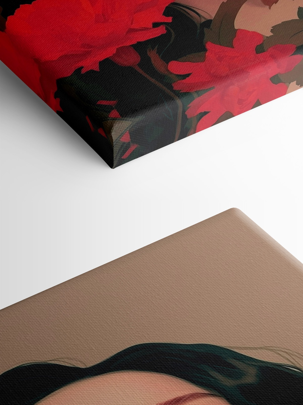 Wyobraź sobie, że wchodzisz do pokoju i witasz się z oszałamiającym wydrukiem na płótnie przedstawiającym kobietę z długimi, czarnymi włosami, całkowicie otoczoną żywymi czerwonymi kwiatami. To jak wejście do snu, w którym kolory tętnią życiem, a każdy płatek wydaje się szeptać tajemnicę. Ten obraz harmonizuje piękno natury i głębię emocji, dzięki czemu idealnie nadaje się do przytulnego salonu lub spokojnej sypialni. Wystarczy jedno spojrzenie, a zmartwienia dnia rozpłyną się, pozostawiając jedynie spokój i inspirację. To nie tylko sztuka; to uczucie – jak ciepły uścisk w chłodny dzień. Dodaj odrobinę odważnego uroku do swojej przestrzeni i pozwól ścianom mówić!