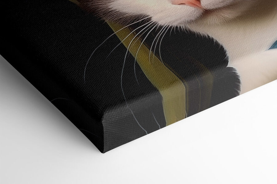 Ten wydruk na płótnie przedstawiający kota w eleganckim zielonym kapeluszu to absolutny początek rozmowy! Wyobraź sobie, że wchodzisz do pokoju i witają Cię te urzekające żółte oczy, prawie tak, jakby zapraszały Cię do małego sekretnego świata kociej rodziny królewskiej. Dzięki żywym kolorom i uroczemu zwrotowi w klasycznym stylu artystycznym, dodaje odrobinę kaprysu do każdej przestrzeni. Idealny dla miłośników kotów lub każdego, kto ceni sztukę z niespodzianką, ten nadruk z pewnością wywoła uśmiech. Może łatwo wywołać śmiech przy kawie lub stać się ukochanym elementem wystroju, który rozjaśni najnudniejsze dni.