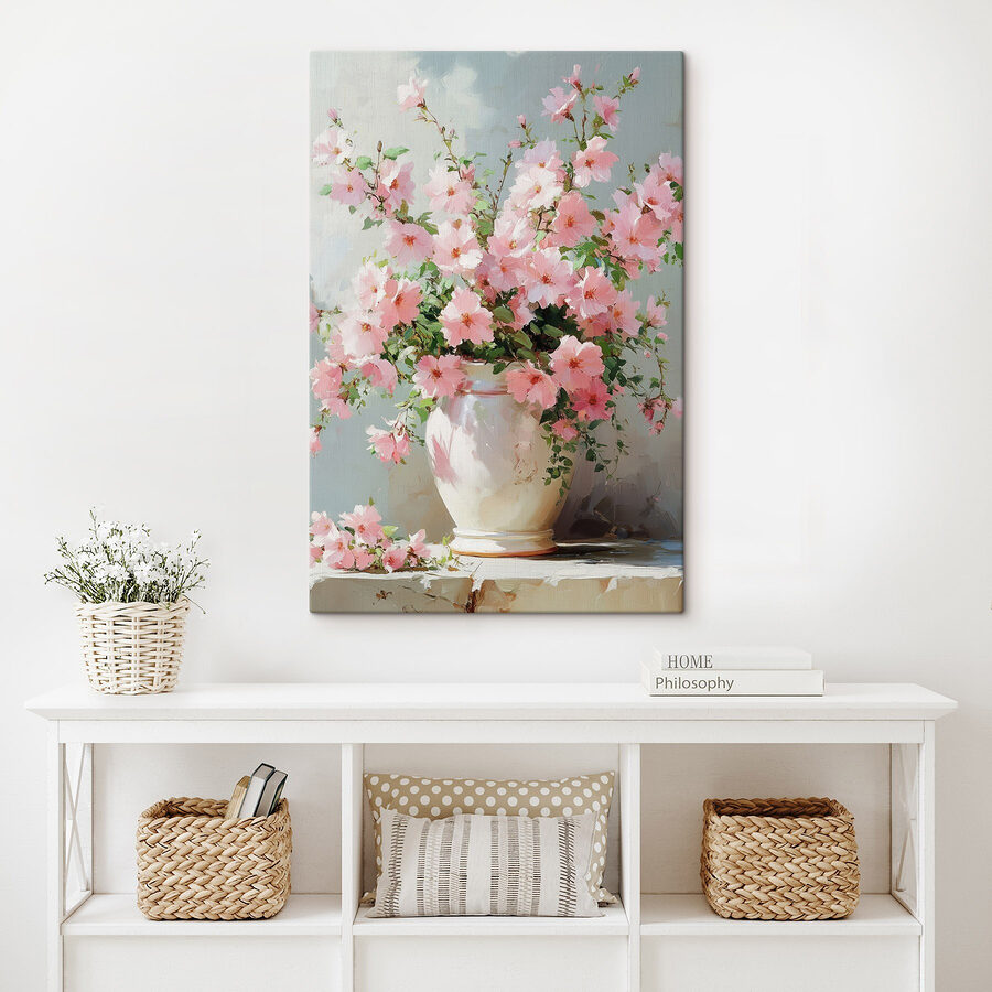 Rozjaśnij swoją przestrzeń dzięki temu wspaniałemu wydrukowi na płótnie “Wazon z różowymi kwiatami”. To jak przeniesienie świeżego ogrodu do wnętrza, bez pyłków i potencjalnych błotnistych śladów! Delikatne różowe płatki i bujne zielone liście praktycznie tańczą na delikatnym tle, tworząc atmosferę, która jest zarówno zachęcająca, jak i spokojna. Wyobraź to sobie w przytulnym kąciku do czytania lub nad pustym płaszczem – uśmiechy dookoła! To rodzaj sztuki, która sprawia, że zatrzymujesz się i oddychasz, a może nawet wspominasz słoneczne dni. Idealny dla miłośników przyrody lub każdego, kto potrzebuje odrobiny radości. Poważnie, kto nie poczułby się trochę szczęśliwszy z tym pięknem na ścianie? Tylko postaraj się nie wpatrywać w nią zbyt długo – możesz skończyć rozmawiając z kwiatami!