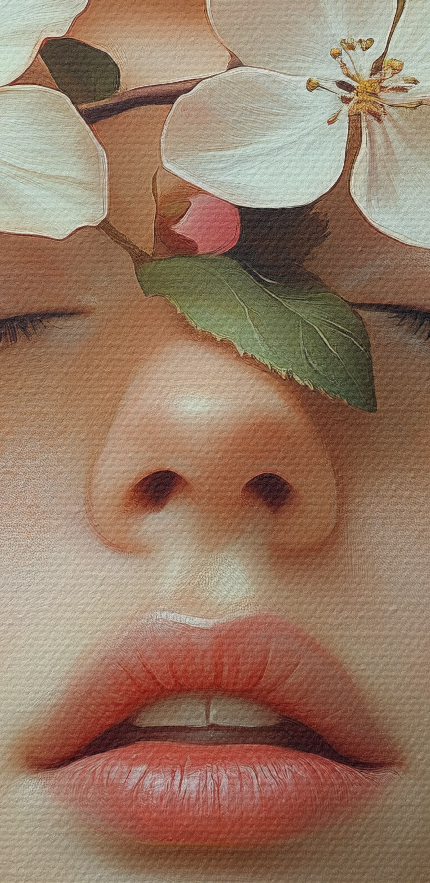 Ten oszałamiający wydruk na płótnie przynosi świeże spojrzenie na piękno, przedstawiając pogodną kobietę z kwiatami zdobiącymi jej twarz. To jak eksplozja wiosny w najlepszy możliwy sposób! Wyobraź sobie, że wieszasz ten obraz w swoim salonie – znajomi wchodzą i nagle Twoja ściana nie jest już tylko ścianą; to początek rozmowy. Delikatne kwiaty szepczą łagodny spokój, który może sprawić, że poczujesz się jak w pachnącym ogrodzie. Z każdym spojrzeniem poczujesz się nieco lżej, a może nawet trochę rozmarzony. Idealny do dodania wyjątkowego akcentu do każdej przestrzeni, to mały kawałek natury, który rozjaśni Twój dzień. Poza tym, kto nie kocha odrobiny kwiatowej magii?
