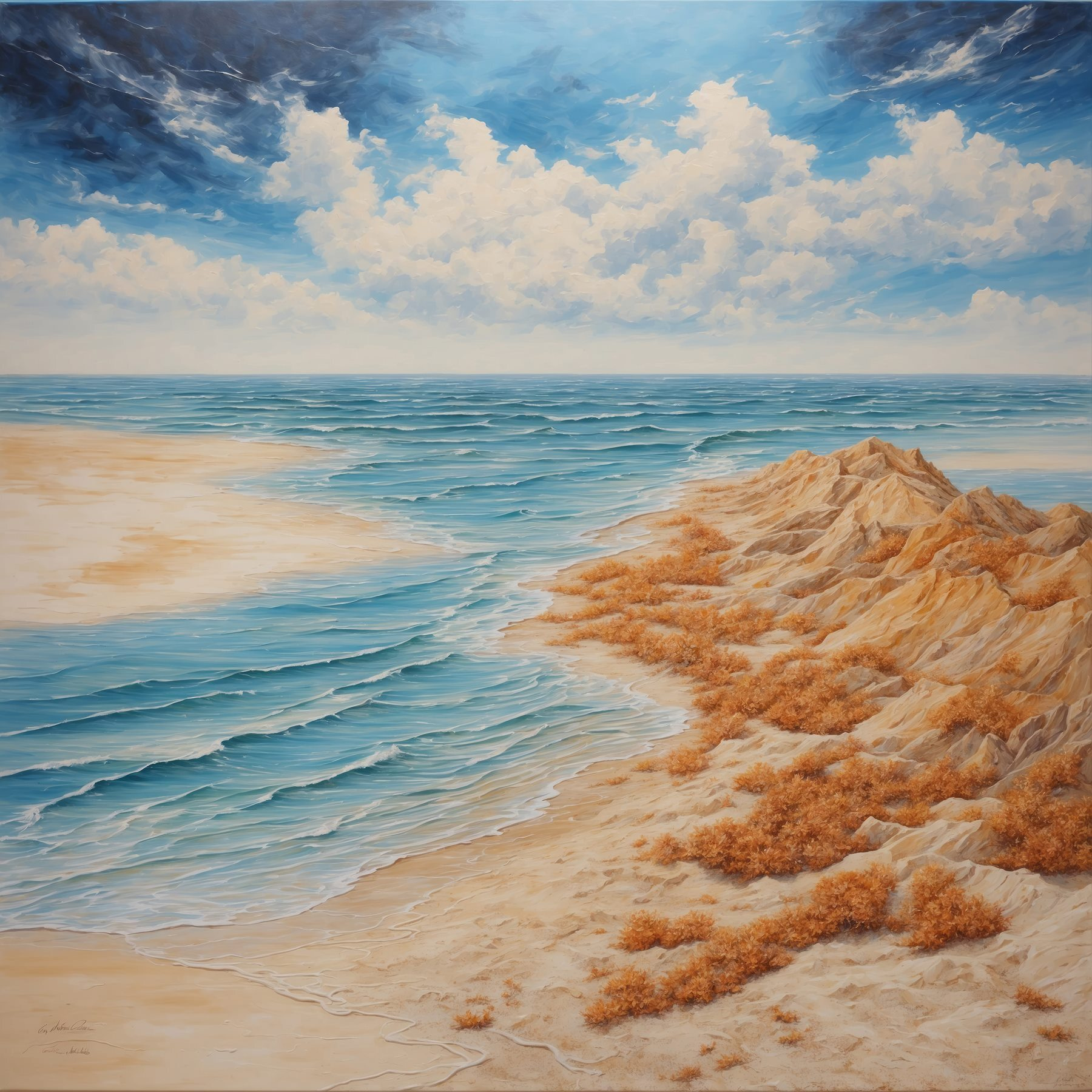 Wyobraź to sobie: spokojna plaża, gdzie miękkie fale szepczą o brzeg, a słońce zagląda przez puszyste chmury. Ten wydruk na płótnie oddaje tę magię, przenosząc kawałek raju do każdego pomieszczenia. Wyobraź sobie, że wisi w przytulnym zakątku, wywołując marzenia o piaszczystych palcach i oceanicznej bryzie. Żywe błękity i ziemiste odcienie zachęcają do ciepła i pozytywnego nastawienia, idealnego dla uspokajającej atmosfery. To jak mini wakacje, które nigdy się nie kończą – idealne na te chwile, kiedy świat wydaje się zbyt gorączkowy. Dotyk natury na ścianie, który przemawia do duszy.