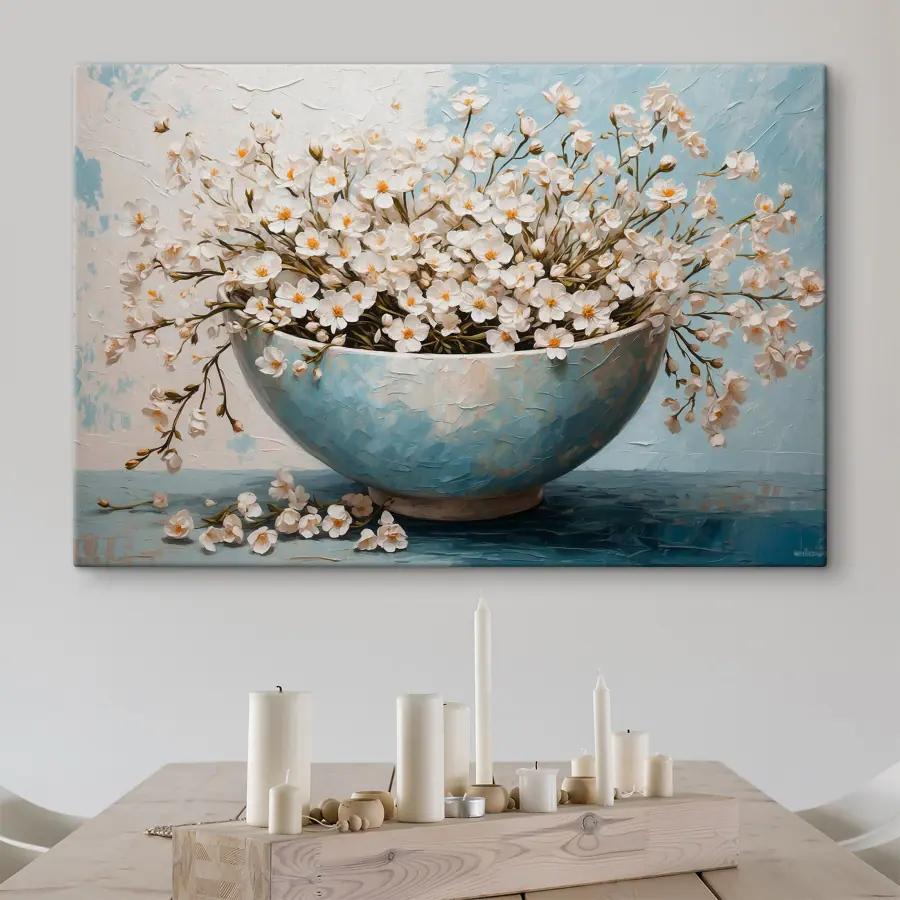 Dodaj uroku swojej przestrzeni dzięki temu pięknemu drukowi na płótnie przedstawiającemu misę z delikatnymi kwiatami! Miękkie odcienie i delikatne kwiaty tworzą spokojną atmosferę, która jest idealna do rozjaśnienia każdego pomieszczenia. Wyobraź sobie popijanie herbaty podczas patrzenia na to piękno – to jak przytulny uścisk dla oczu. Niezależnie od tego, czy znajduje się w salonie, czy w cichym zakątku, ta grafika zachęca do uśmiechu i marzeń o słonecznych dniach. Ponadto jest to świetny początek rozmowy! Nie można się pomylić z dziełem, które wnosi odrobinę natury do wnętrza. Odrobina kaprysu, szczypta koloru – to z pewnością przyciągnie wzrok!