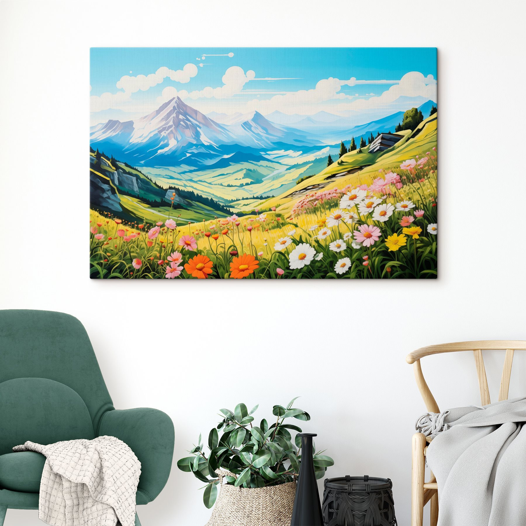 Przekształć dowolną przestrzeń w spokojną ucieczkę dzięki temu oszałamiającemu wydrukowi na płótnie. “Obraz Landscape with Mountains and Flowers” oddaje tętniący życiem świat, w którym majestatyczne szczyty spotykają się z kwitnącymi polami. Wyobraź sobie popijanie porannej kawy w otoczeniu kolorowych kwiatów i zapierających dech w piersiach gór – to dopiero poprawia nastrój! Mieszanka jasnych odcieni i delikatnych pasteli tworzy idealną równowagę, dzięki czemu obraz jest zarówno radosny, jak i uspokajający. Powieś go w swoim salonie lub sypialni i pozwól, by piękno natury inspirowało Cię każdego dnia. Kto nie chciałby mieć małego kawałka raju w domu?
