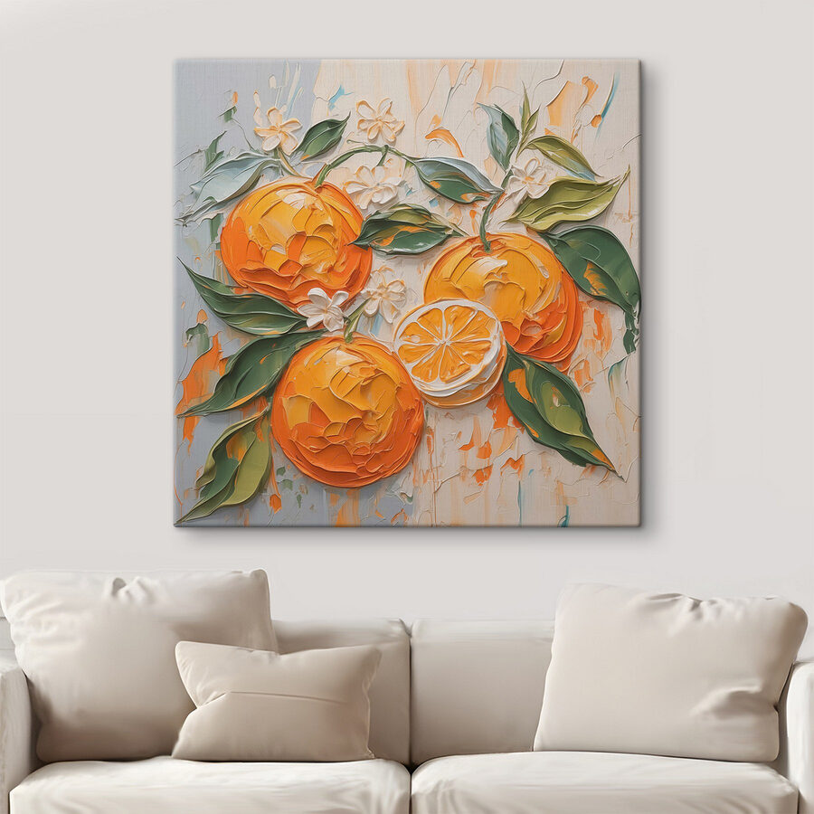Rozjaśnij swoją przestrzeń dzięki temu drukowi na płótnie z wesołymi pomarańczami i bujnymi zielonymi liśćmi. To jak mały kawałek radości natury, idealny na te chwile, kiedy potrzebujesz odrobiny koloru w ciągu dnia. Wyobraź sobie, że przechodzisz obok niego każdego ranka, czując energię, którą przynosi, jakbyś mógł niemal poczuć zapach cytrusów w powietrzu. Zabawne wiry i żywe odcienie natychmiast wywołują radość, sprawiając, że każde pomieszczenie wydaje się świeże i żywe. Idealna do kuchni lub przytulnego kącika, ta grafika z pewnością wywoła uśmiech, a może nawet ochotę na letnią sałatkę owocową. Kto by pomyślał, że dekoracja może być tak smaczna?
