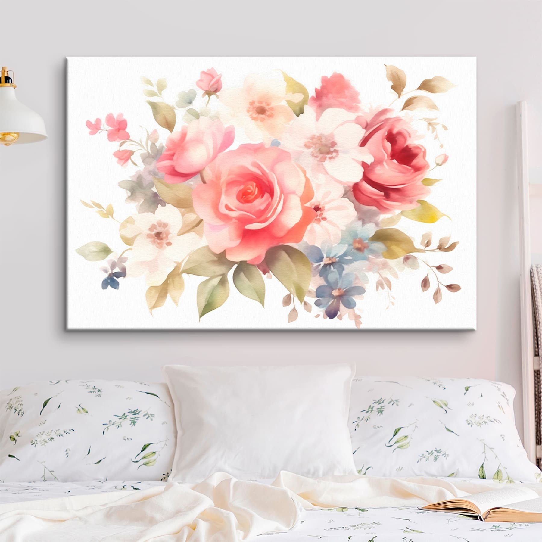 Rozjaśnij każde pomieszczenie dzięki temu pięknemu drukowi na płótnie z oszałamiającym bukietem kwiatów na białym tle. To jak posiadanie ogrodu w domu – bez uciążliwych pyłków! Wyobraź sobie popijanie kawy w delikatnych odcieniach różu i błękitu. Ta grafika bez wysiłku dodaje odrobinę natury, sprawiając, że nawet najnudniejsze ściany stają się radosne i żywe. Niezależnie od tego, czy znajduje się w przytulnym salonie, czy w słonecznej kuchni, zachęca do ciepła i odrobiny elegancji. Ponadto, jest to świetny sposób na rozpoczęcie rozmowy w chwilach, gdy nie ma czasu na pogawędkę. Kto nie chciałby porozmawiać o kwiatach?
