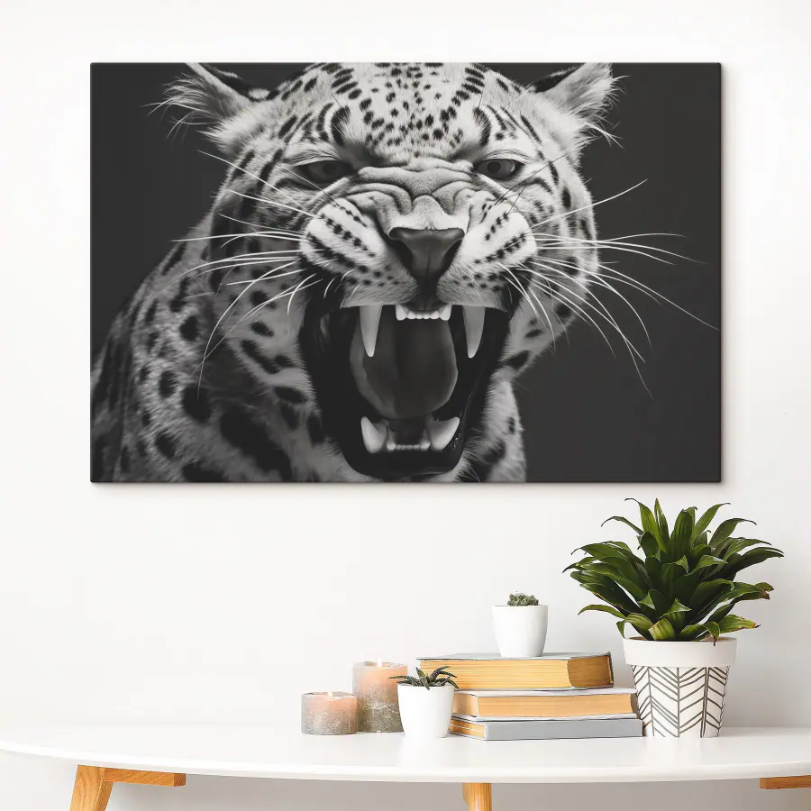 Wprowadź zadziorny akcent na swoje ściany dzięki temu uderzającemu wydrukowi na płótnie “Fierce Expression of a Wild Animal”. To jak posiadanie małego kawałka dżungli w swoim salonie! To dzikie piękno ryczy z osobowością, dzięki czemu jest urzekającym centralnym elementem każdej przestrzeni. Wyobraź sobie, że popijasz poranną kawę, gubiąc się w tych intensywnych oczach – zdecydowanie początek rozmowy!