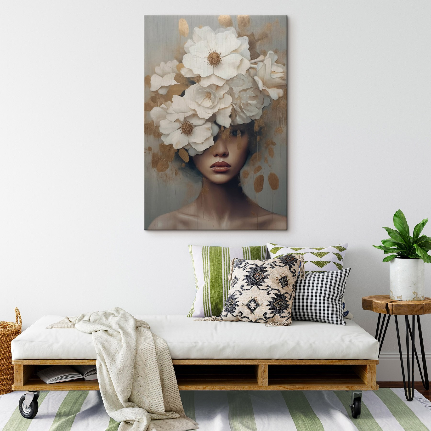 Odmień swoją przestrzeń dzięki temu czarującemu drukowi na płótnie przedstawiającemu kobietę ozdobioną bujnymi kwiatami. To jak powiew świeżego powietrza w Twoim salonie. Wyobraź sobie: po długim dniu zapadasz się na kanapie, a ten żywy obraz przyciąga wzrok, bez wysiłku kradnąc show. Delikatne pociągnięcia i oszałamiające kwiaty szepczą historie o naturze, cieple i pięknie, inspirując marzenia o słonecznych ogrodach. Jest idealny do pobudzania rozmów lub po prostu dodawania odrobiny osobowości do każdej ściany. Kto potrzebuje wycieczki do kwiaciarni, gdy to piękno jest na wyciągnięcie ręki?