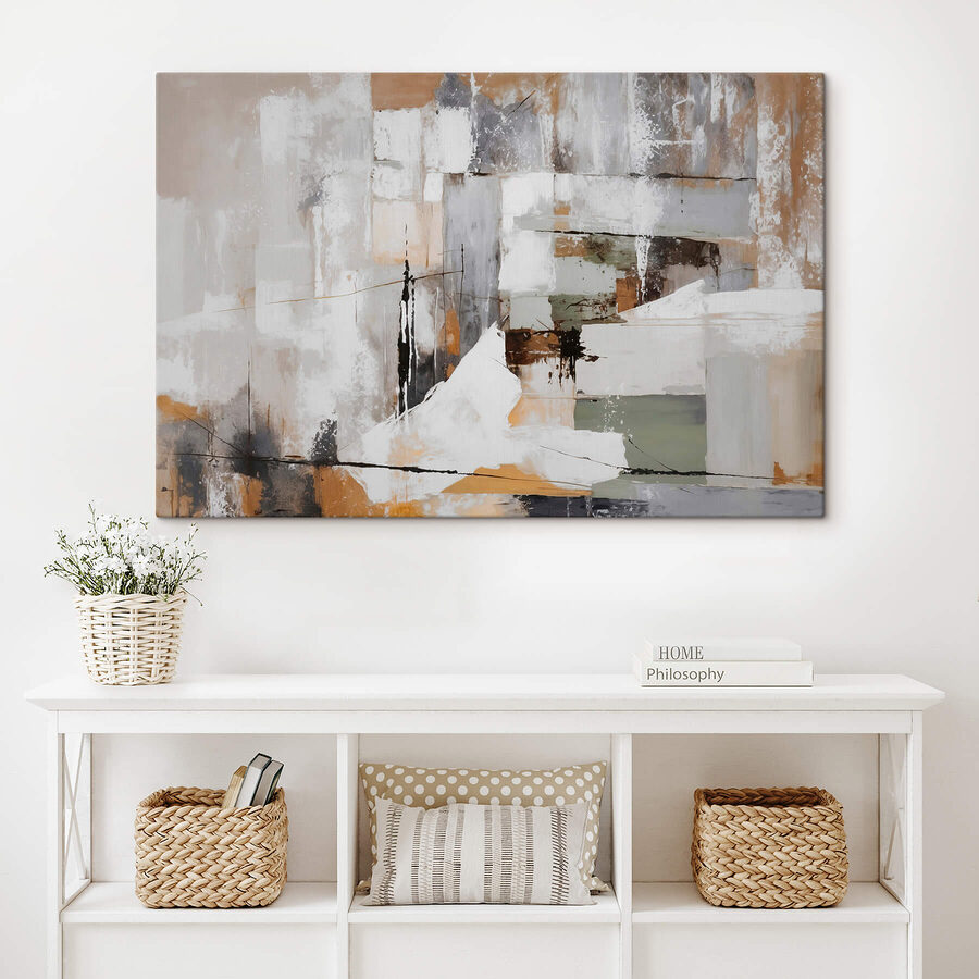 Zmień swoje wnętrze dzięki tej przyciągającej wzrok grafice na płótnie, która łączy odcienie bieli i brązu w oszałamiające dzieło sztuki. Jest jak przytulny koc na ścianę – zachęcający, ciepły i nieco intrygujący. Abstrakcyjny wzór tańczy w kolorach, które szepczą historie; każdy blok i pociągnięcie pędzla ma swoją osobowość. Wyobraź sobie, że organizujesz kolację i obserwujesz, jak Twoi przyjaciele marszczą brwi, próbując zinterpretować jego znaczenie.