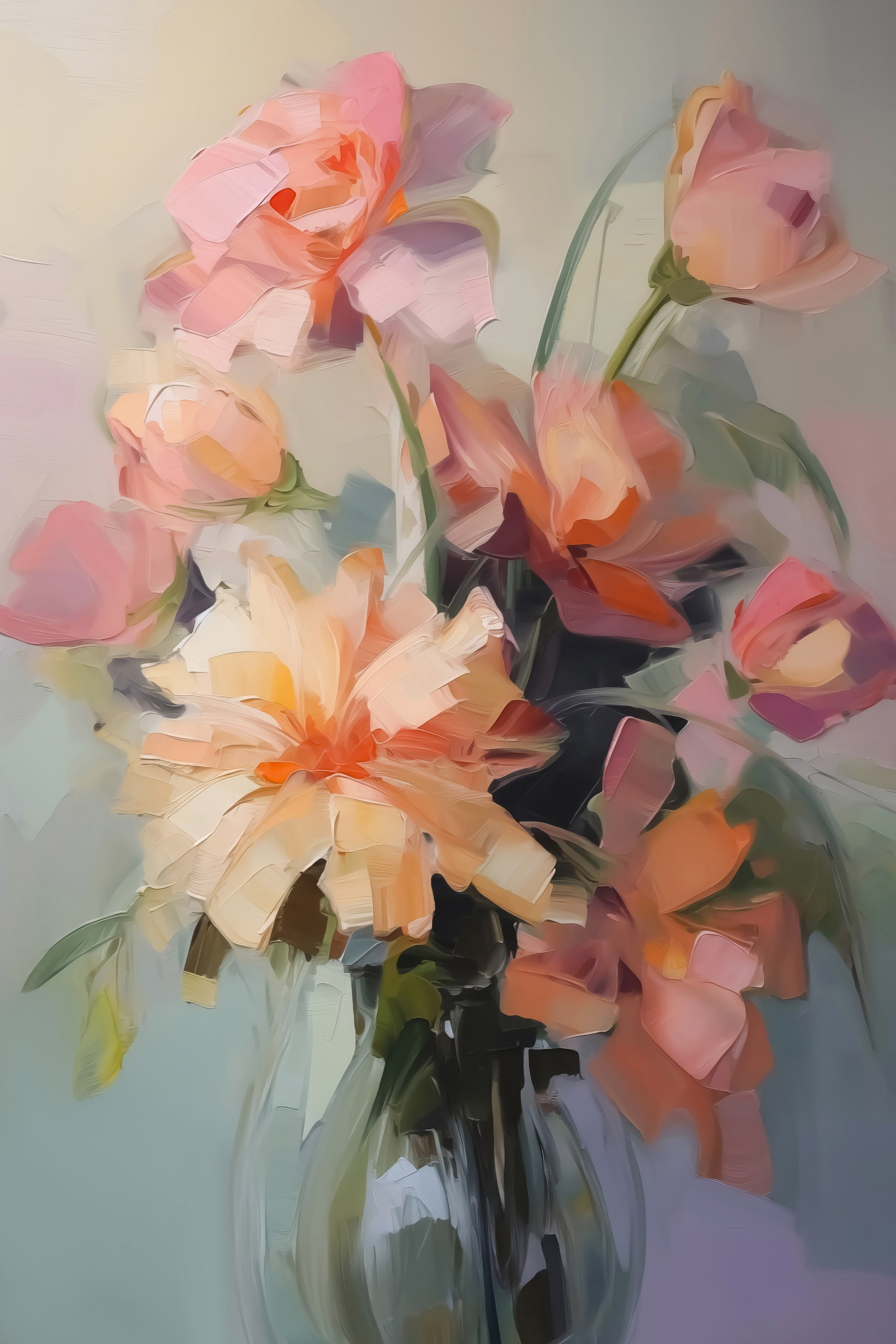 Rozjaśnij każde pomieszczenie dzięki temu wspaniałemu drukowi na płótnie przedstawiającemu kwiaty w wazonie. To jak przeniesienie małego ogrodu do domu, bez brudu i stworzeń – tylko czyste, kolorowe piękno, które nie więdnie! Wyobraź sobie, że każdego ranka budzisz się z tym radosnym wybuchem kwiatów. Jest idealny do stworzenia przytulnego kącika lub nawet jako początek rozmowy przy kawie z przyjaciółmi. Każda plama różu i delikatnego pomarańczu tańczy w zachwycający sposób, przywołując na myśl słoneczne dni i delikatną bryzę. Idealny dla miłośników kwiatów lub każdego, kto potrzebuje odrobiny radości w swoim wystroju. Kto by się na to nie uśmiechnął?