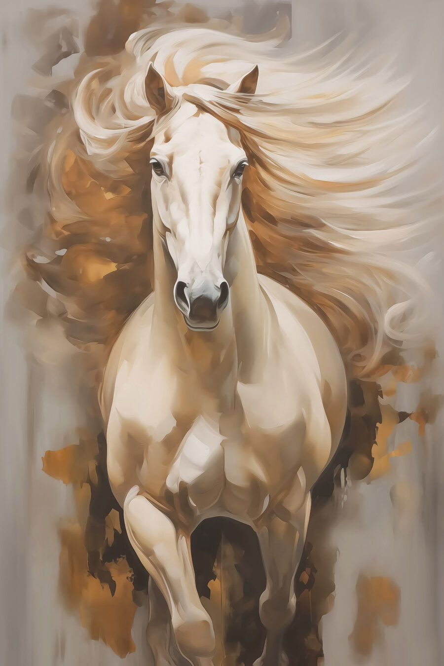 Wyobraź sobie uderzającą scenę tętniącą życiem – ten wydruk na płótnie przedstawiający wspaniałego konia z płynącą grzywą to strzał w dziesiątkę. Oddaje on dzikiego ducha natury, tak jakby koń mógł zeskoczyć ze ściany i pogalopować prosto do Twojego salonu. Wyobraź sobie wchodzących przyjaciół, ich oczy rozszerzające się z zachwytu, zastanawiających się, jak tak potężny obraz znalazł się na twojej ścianie. Ten obraz nie tylko wisi; on oddycha opowieściami o wolności i wdzięku. Idealny dla miłośników zwierząt lub każdego, kto pragnie odrobiny cudu natury! Kto nie poczułby się nieco bardziej żywy z tym pięknem rozjaśniającym jego przestrzeń?