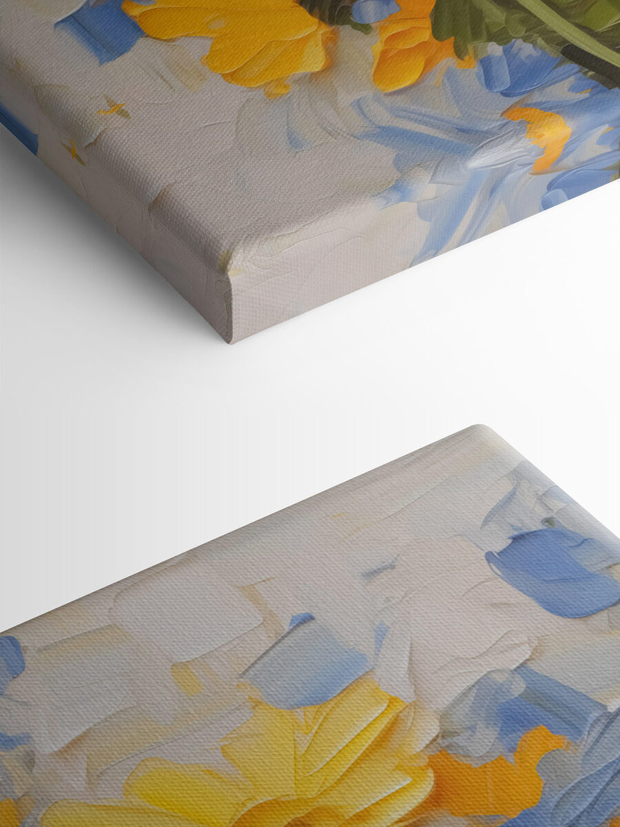 Rozjaśnij swoją przestrzeń dzięki temu pięknemu drukowi na płótnie przedstawiającemu wesołe żółte i niebieskie kwiaty. Idealny do dodania odrobiny koloru, to prawie jak posiadanie słonecznego ogrodu w swoim domu. Wyobraź sobie, że przechodzisz obok niego każdego dnia – te radosne kwiaty mogą wywołać uśmiech nawet w deszczowy poranek. Zabawne pociągnięcia pędzla sprawiają, że jest to przyciągający wzrok element, zachęcający do rozmów i podziwiania. Niezależnie od tego, czy znajduje się w salonie, przytulnym zakątku, czy nawet w domowym biurze, ta grafika wnosi odrobinę natury do wnętrza, sprawiając, że każda przestrzeń wydaje się nieco bardziej żywa.