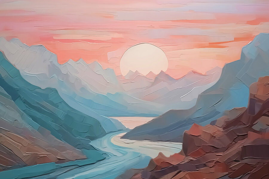Wyobraź sobie, że wchodzisz do pokoju, w którym piękno natury szepcze do ciebie jak stary przyjaciel. Ten obraz “Obraz River Running Through a Mountain” oddaje spokojny moment, z krętą rzeką położoną między majestatycznymi szczytami. Delikatne odcienie różu i błękitu zachęcają do wyciszenia, idealnego do relaksu po długim dniu. To tak, jakby mieć kawałek wspaniałej przyrody w swojej przytulnej przestrzeni – nie trzeba mieć butów turystycznych! Niezależnie od tego, czy łapie poranne światło, czy ściemnia się na wieczorne odprężenie, ta grafika wprawia w dobry nastrój. Sprawi, że każdy zatrzyma się i pomyśli: “Wow, przydałoby mi się trochę więcej rzeki w moim życiu”. Więc śmiało, niech przekształci twoją ścianę w senną ucieczkę!