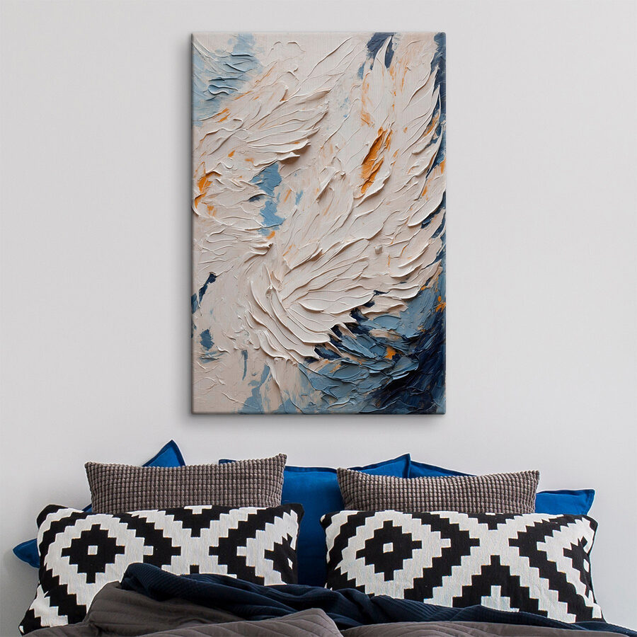 Wyobraź sobie, że budzisz się na płótnie, które szepcze delikatne wibracje. “Ethereal Wings in Soft Hues” tańczy w zwiewnych kolorach, które przypominają delikatną bryzę w ciepłe popołudnie. Zawirowania i pociągnięcia tworzą kojące wrażenie, łaskocząc wyobraźnię i zachęcając do marzeń. Wyobraź sobie to piękno w przytulnym kąciku do czytania lub nad spokojnym łóżkiem. Jest jak miękki uścisk dla ścian, podnoszący na duchu bez zbytniego wysiłku. Przyjaciele podejdą bliżej, z szeroko otwartymi oczami, zastanawiając się, czy natknęli się na galerię, czy po prostu znaleźli idealne tło dla małych chwil życia. Ciepłe, podnoszące na duchu i bardzo zachęcające!