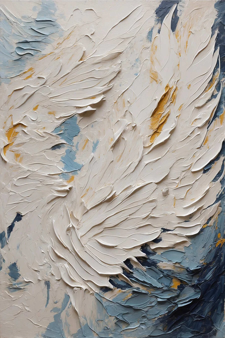 Wyobraź sobie, że budzisz się na płótnie, które szepcze delikatne wibracje. “Ethereal Wings in Soft Hues” tańczy w zwiewnych kolorach, które przypominają delikatną bryzę w ciepłe popołudnie. Zawirowania i pociągnięcia tworzą kojące wrażenie, łaskocząc wyobraźnię i zachęcając do marzeń. Wyobraź sobie to piękno w przytulnym kąciku do czytania lub nad spokojnym łóżkiem. Jest jak miękki uścisk dla ścian, podnoszący na duchu bez zbytniego wysiłku. Przyjaciele podejdą bliżej, z szeroko otwartymi oczami, zastanawiając się, czy natknęli się na galerię, czy po prostu znaleźli idealne tło dla małych chwil życia. Ciepłe, podnoszące na duchu i bardzo zachęcające!