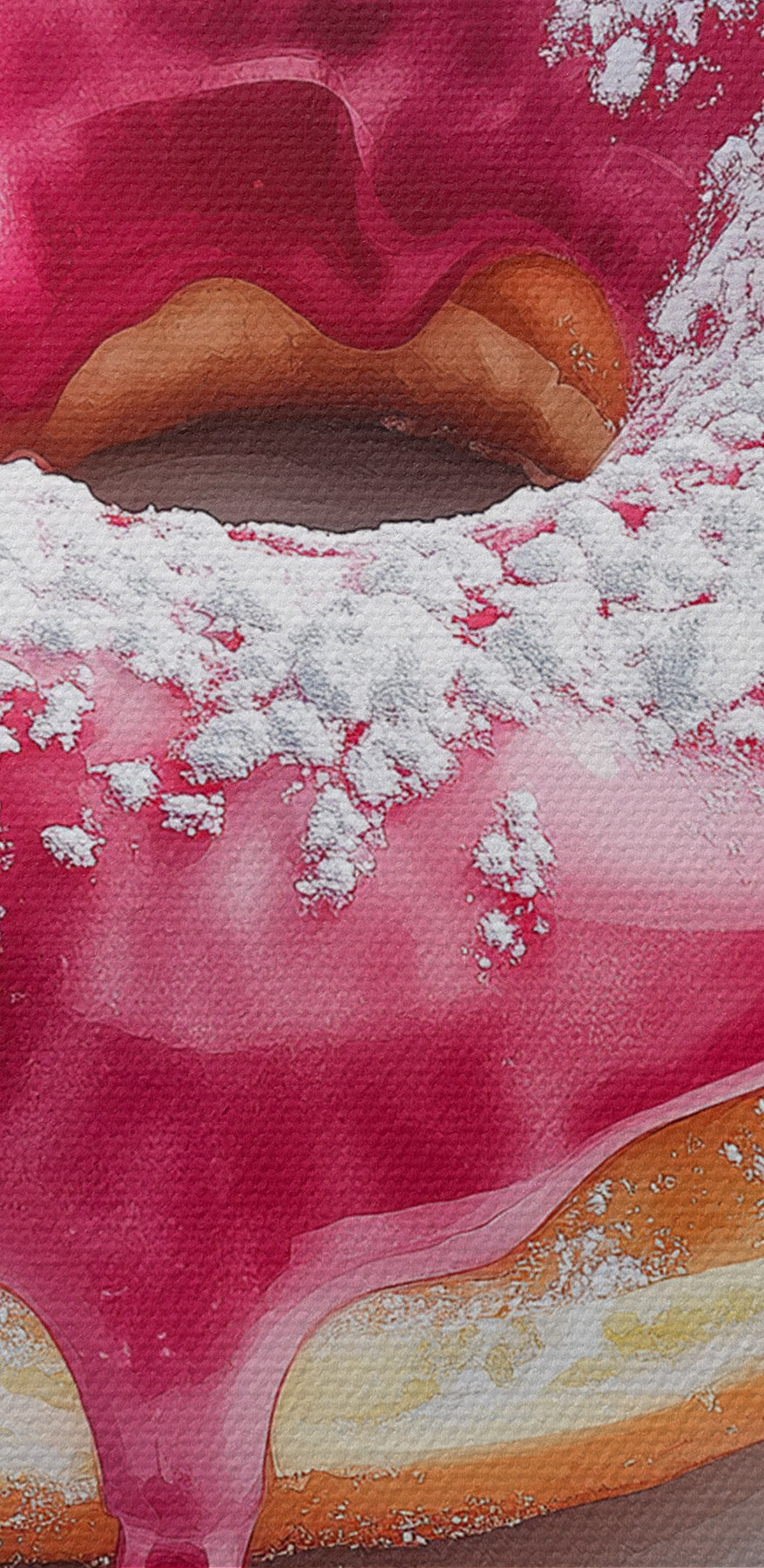 Brighten up any room with this mouthwatering canvas print of a donut draped in pink frosting and a dusting of powdered sugar. It’s not just food art; it’s pure joy captured on canvas! Picture this sweet treat hanging in a cozy kitchen or a fun café, inviting compliments from guests. The glossy glaze seems to almost invite a bite—imagine the taste! This piece brings a playful vibe, reminding everyone that sometimes, it’s okay to indulge. It’s like a little party for your walls, sparking conversations and cravings alike. Perfect for those who appreciate tasty delights and unique decor!