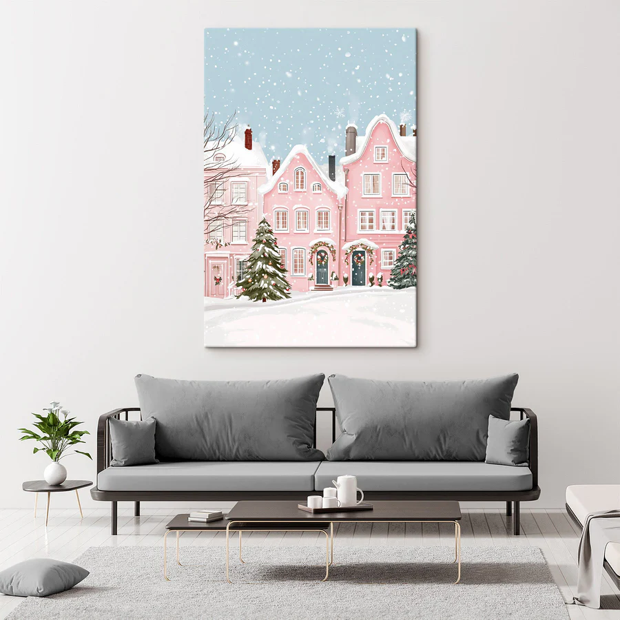 Zmień wygląd każdej ściany dzięki temu uroczemu wydrukowi na płótnie „Różowy domek ze śniegiem”. Wyobraź sobie: delikatne płatki śniegu tańczą wokół przytulnych różowych domków, lśniących pod jasnoniebieskim niebem. To jak zimowa kraina czarów, która pojawiła się w Twoim salonie! Ta wymarzona scena oddaje magię sezonu, przywołując ciepłe wspomnienia gorącego kakao i śmiechu z przyjaciółmi. Niezależnie od tego, czy jest to świąteczna dekoracja na okres świąteczny, czy po prostu urocze przypomnienie piękna zimy, ten obraz nadaje każdej przestrzeni radosną, przytulną atmosferę. Powiesić go i pozwolić, aby magia się rozwinęła!