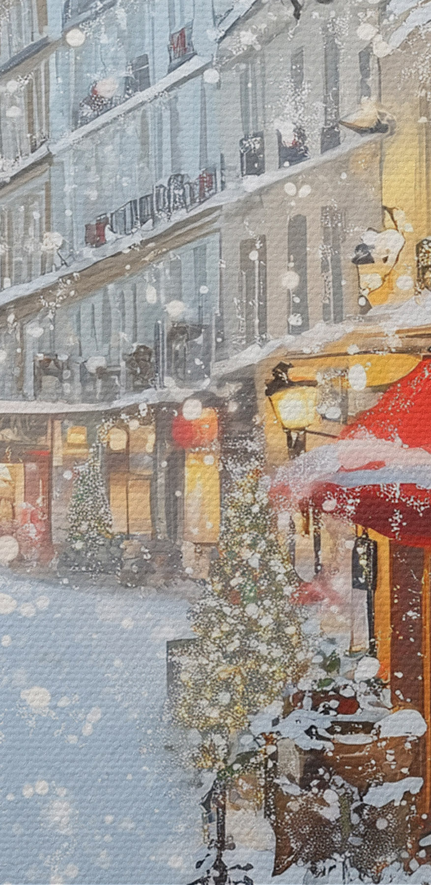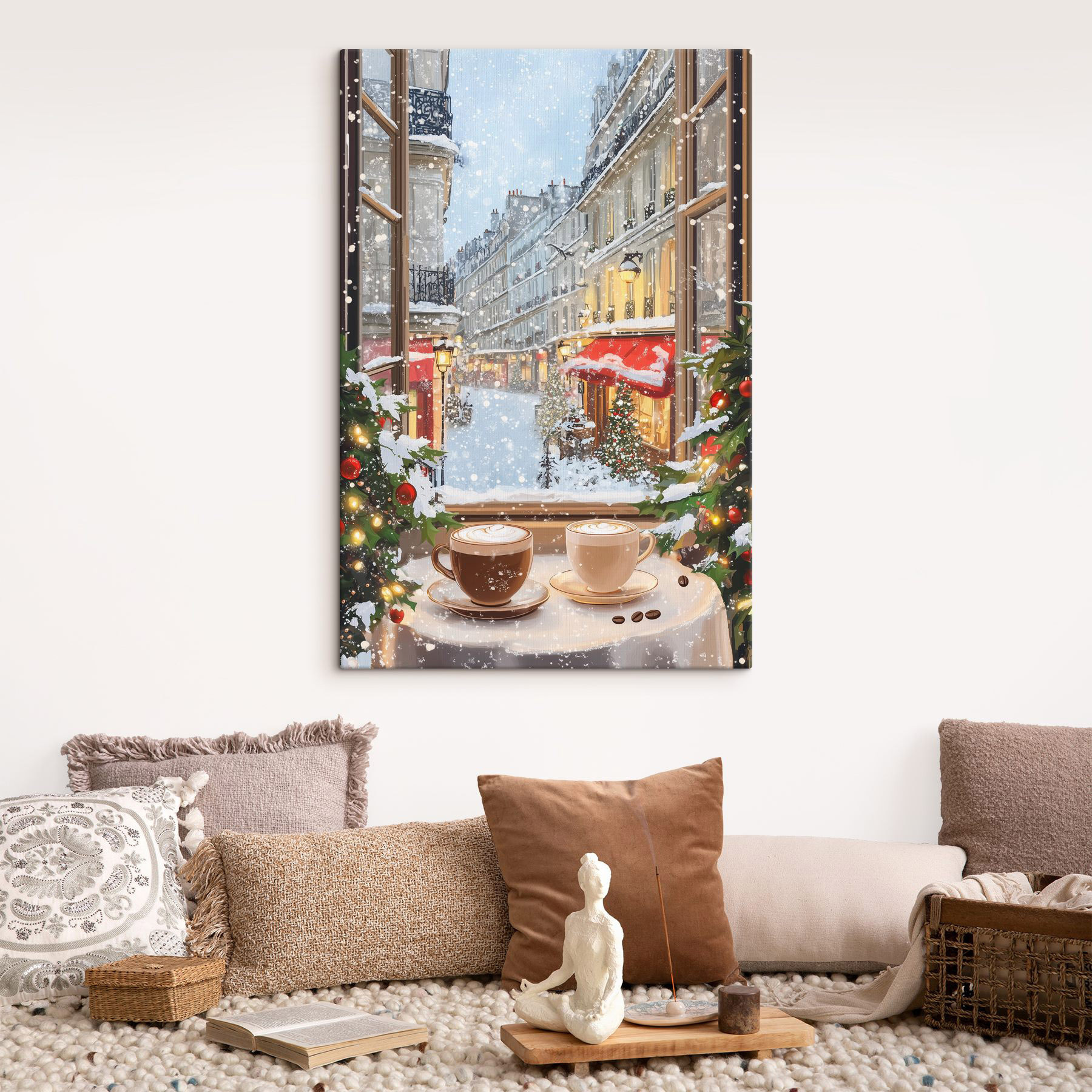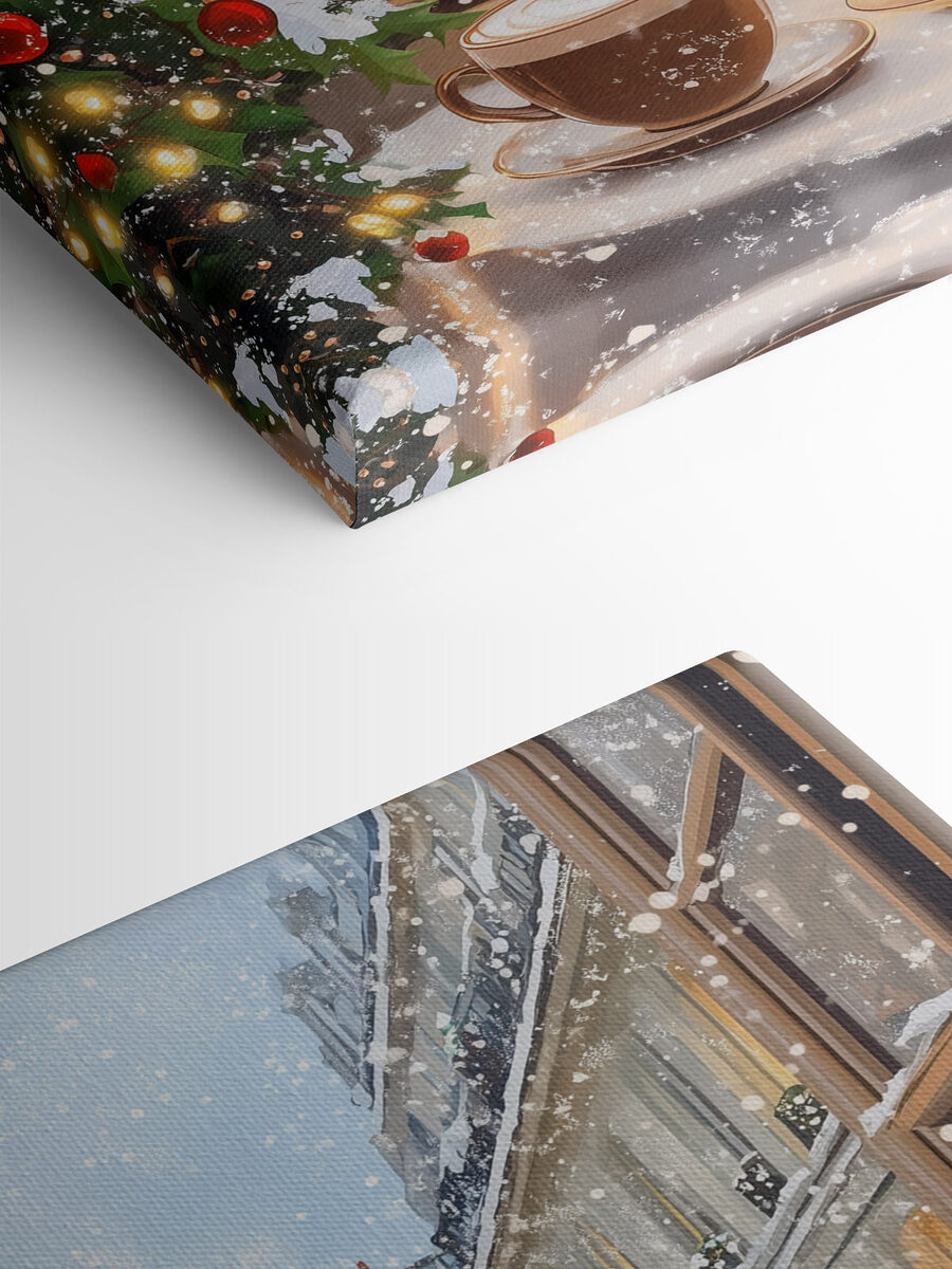 Wyobraź sobie, że przytulasz się do tego wydruku na płótnie, gdzie dwie ciepłe filiżanki kawy siedzą zachęcająco na tle zaśnieżonej ulicy. To jak zaglądanie przez okno w chłodny dzień, z migoczącymi światłami i świąteczną radością wokół ciebie. Aromat świeżej kawy unosi się wokół, wypełniając przestrzeń ciepłem i komfortem. Ten nadruk nie tylko zdobi ścianę, ale także pobudza marzenia o serdecznych pogawędkach przy kawie, śmiechu z przyjaciółmi lub spokojnych porankach oglądania spadających płatków śniegu. Idealny do kuchni lub przytulnego kącika, wywołuje uśmiech za każdym razem, gdy obok niego przechodzisz.