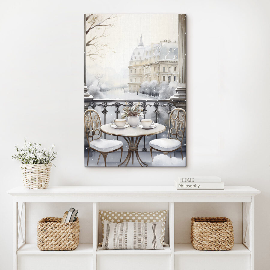 Zmień swoje wnętrze dzięki temu czarującemu wydrukowi na płótnie, przedstawiającemu przytulny stół z parującymi filiżankami i uroczą wazonem z kwiatami, a wszystko to na tle wymarzonego, śnieżnego krajobrazu. Wyobraź sobie: spokojny zimowy poranek, płatki śniegu tańczące na zewnątrz, podczas gdy Ty popijasz swój ulubiony napój — ten druk doskonale oddaje tę błogą chwilę. Delikatne kolory i spokojna atmosfera zachęcają do relaksu, dzięki czemu idealnie pasuje do każdego pomieszczenia. Niezależnie od tego, czy jest to salon, czy przytulny kącik do czytania, ten obraz dodaje ciepła i uroku, niczym przytulny uścisk w chłodny dzień. To nie tylko sztuka, to prawdziwe doświadczenie!