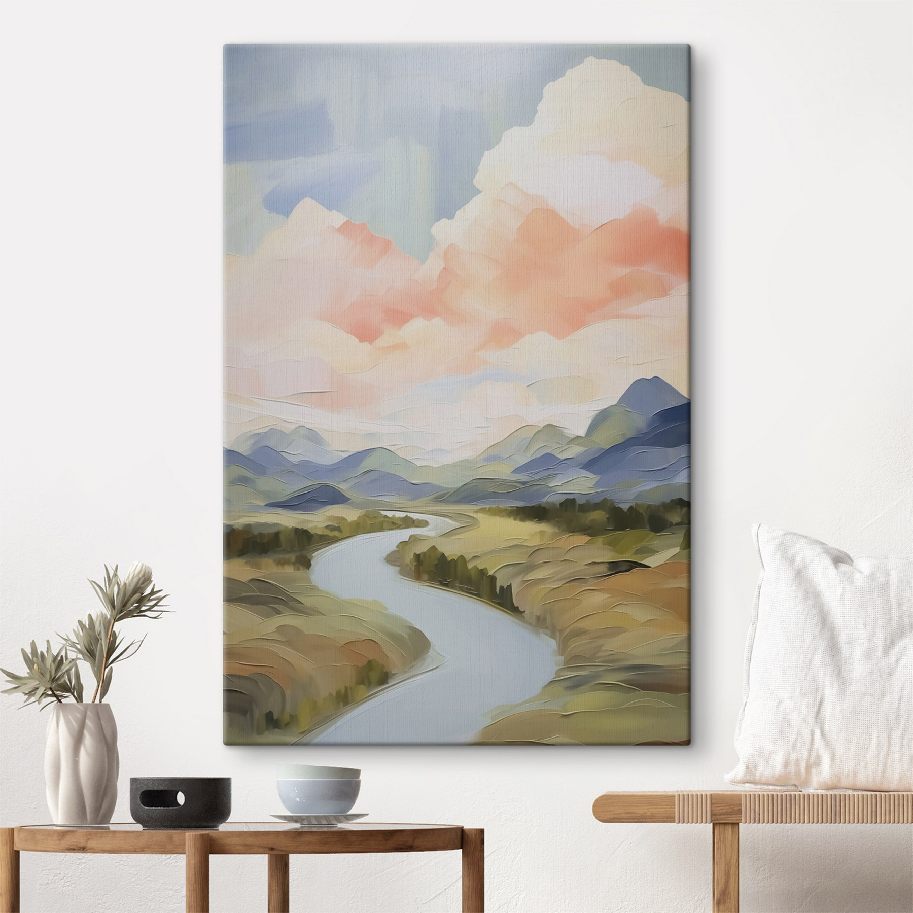 Transform your space with “Canvas Prints River Running Through a Valley.” This piece captures the serene flow of nature, where the river glides effortlessly through lush valleys. Imagine sitting back with a warm cup of coffee, basking in the soft hues of blues and earthy greens, as the gentle curves of the river whisk you away to a peaceful afternoon.