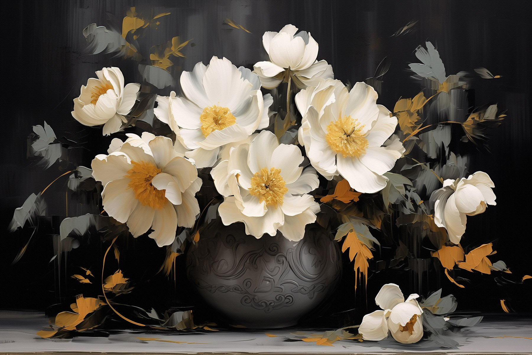 Rozjaśnij swoją przestrzeń dzięki temu drukowi na płótnie z oszałamiającą aranżacją białych kwiatów w wazonie. To jak posiadanie małego kawałka natury bezpośrednio na ścianie, bez potrzeby posiadania zielonego kciuka. Wyobraź sobie, że pijesz poranną kawę i witają Cię te eleganckie kwiaty – to codzienny przypływ radości! Miękkie, kremowe płatki i subtelne odcienie koloru dodają ciepła, dzięki czemu idealnie nadają się do każdego pomieszczenia. To nie tylko dekoracja; to małe przypomnienie, że piękno może kwitnąć wszędzie, nawet gdy wisi nad kanapą! Może też zainspirować do marzeń na jawie.