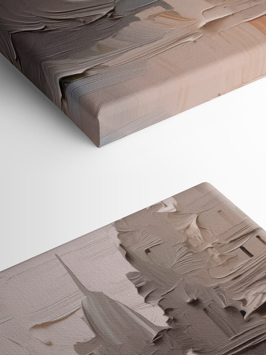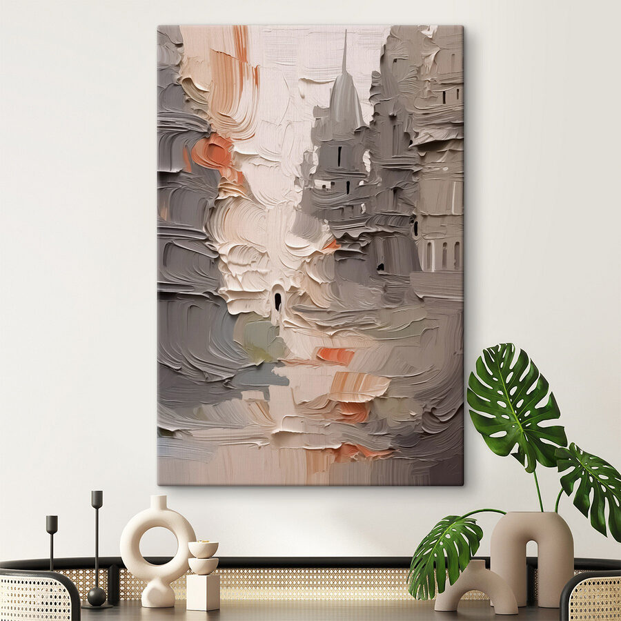 Ten oszałamiający wydruk na płótnie przedstawiający budynek nadaje każdemu pomieszczeniu artystyczny charakter. Wyobraź sobie, że wchodzisz do pokoju i witają Cię żywe kolory i faktury, które niemal tańczą na ścianie. Delikatne, kremowe odcienie pięknie się ze sobą łączą, wprowadzając atmosferę spokoju, a niewielkie akcenty kolorystyczne dodają całości energii.