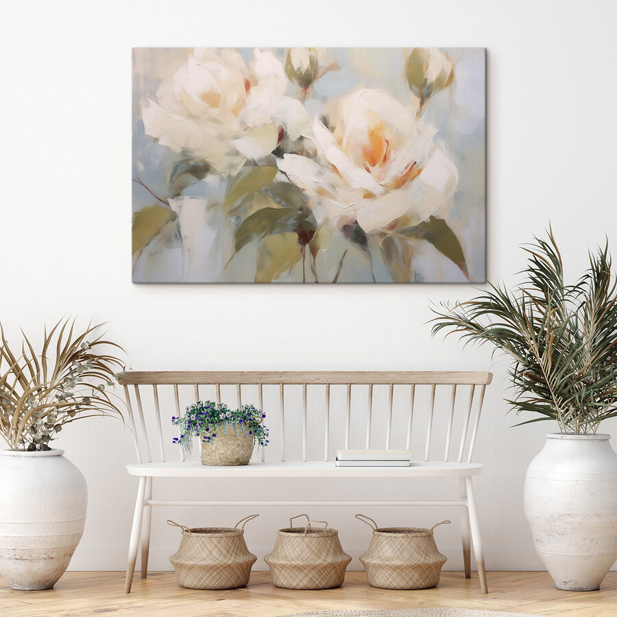 Wprowadź odrobinę natury do swojego wnętrza dzięki temu wspaniałemu wydrukowi na płótnie, przedstawiającemu delikatne, bajeczne kwiaty na spokojnym niebieskim tle. Wyobraź sobie, że wchodzisz do swojego salonu i witają Cię te kwiaty, które zdają się szeptać sekrety wiosny. Każde pociągnięcie pędzla oddaje delikatny urok płatków, sprawiając wrażenie, jakbyś przeniósł kwitnący ogród prosto do swojego wnętrza. Idealny do rozjaśnienia przytulnego kącika lub dodania odrobiny koloru do monotonnej ściany, ten obraz wprowadza ciepło i pozytywną energię. Wyobraź sobie – przyjaciele zebrani w jednym miejscu, śmiech wypełniający powietrze, a wszystko to w otoczeniu piękna tych kwiatów. Kto nie poczułby się trochę bardziej radosny?