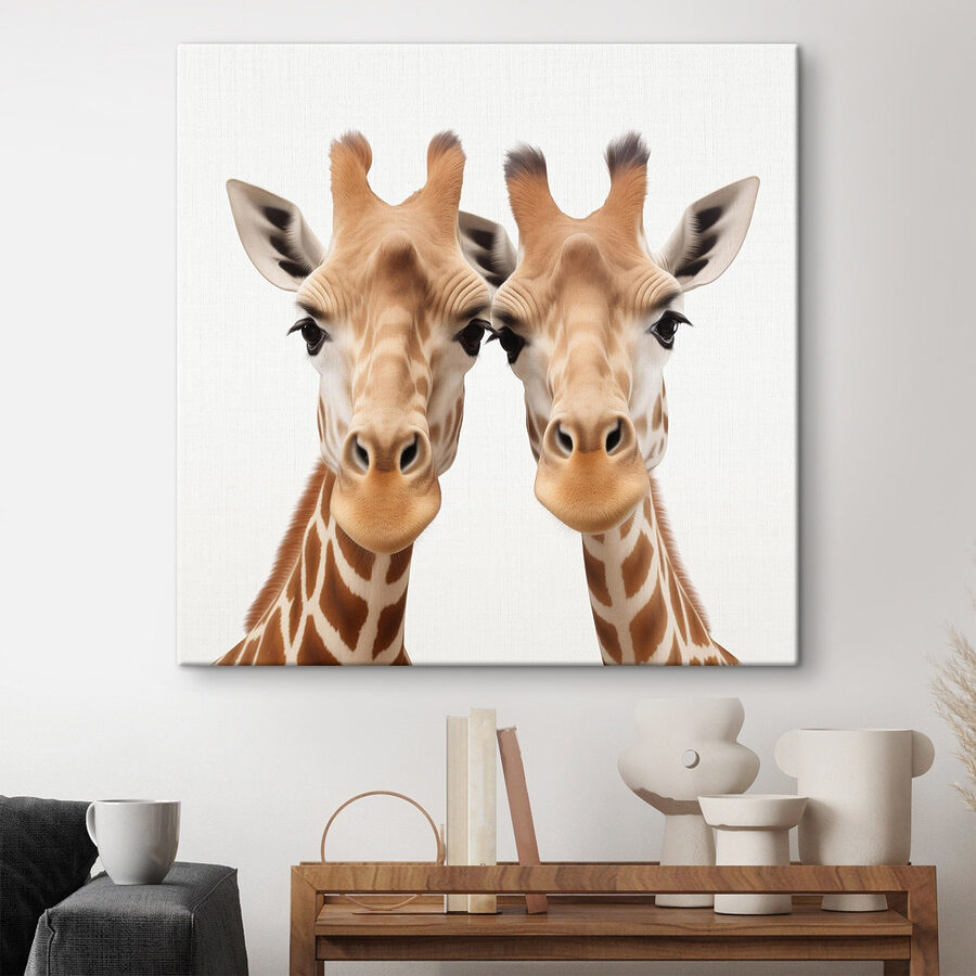 Wprowadź zabawny akcent do swojego wnętrza dzięki „Wydrukowi na płótnie przedstawiającemu dwie ciekawskie żyrafy obok siebie”. Te urocze żyrafy emanują urokiem i ciekawością, dzięki czemu idealnie pasują do każdego pomieszczenia. Wyobraź sobie, że wchodzisz do swojego salonu i witają Cię te łagodne olbrzymy, a ich słodkie miny natychmiast poprawiają Ci nastrój. Są idealnym sposobem na przełamanie lodów wśród gości – nikt nie może się powstrzymać od uśmiechu na widok tych długich szyi i wielkich, zamyślonych oczu. Niezależnie od tego, czy wiszą w pokoju dziecięcym, czy dodają charakteru przytulnemu kącikowi, wprowadzają radość, ciepło, a może nawet odrobinę przygody. Kto wie, może zainspirują do małego safari w codziennym życiu. Trudno nie poczuć odrobiny radości, gdy te dwie postacie czuwają nad nami!