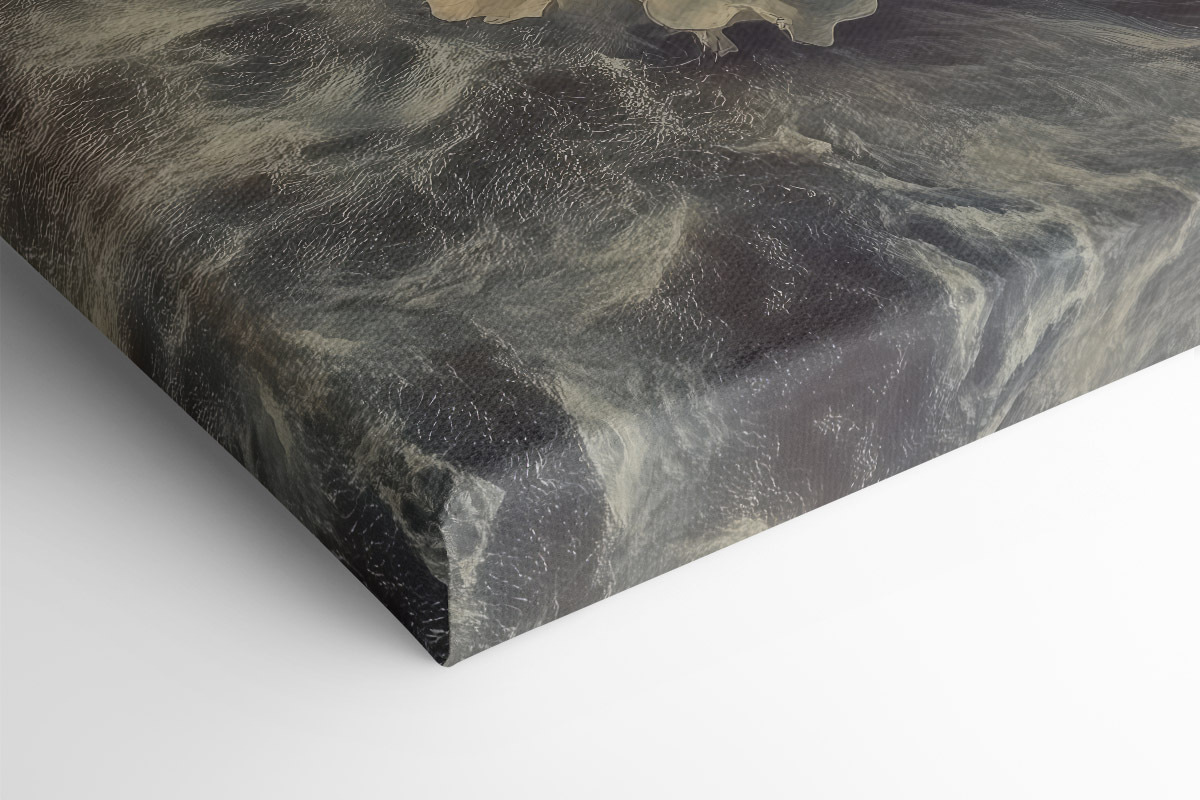 Imagine a scene where the wind tangles your hair and the sea kisses your toes—this canvas print does just that! Titled “Woman in a White Dress Running on Waves,” it captures that magical moment when freedom meets nature. The soft, flowing fabric looks like it’s dancing with the ocean, while the waves swirl around in a beautiful chaos.