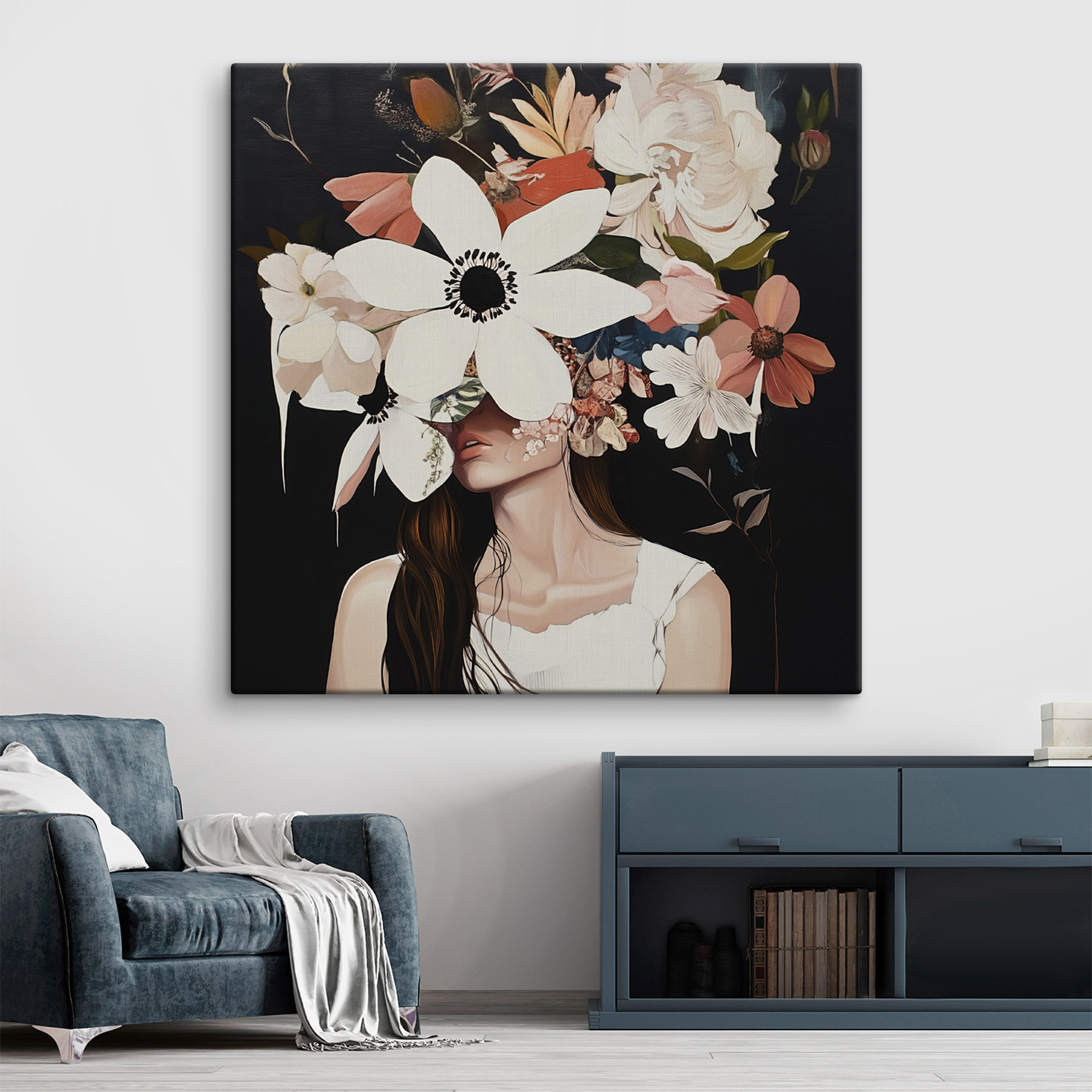 Rozjaśnij swoją przestrzeń tym wspaniałym wydrukiem na płótnie przedstawiającym kobietę ozdobioną kaskadą kwiatów. To tak, jakby zebrała wszystkie kwiaty z ogrodu i powiedziała: “Bawmy się!”. Kontrast ciemnego tła sprawia, że te żywe kwiaty są wyskakujące, prawie jakby wyciągały rękę do widza. Wyobraź sobie, że przechodzisz obok tego piękna każdego dnia – może to wywołać uśmiech lub dwa. Idealny do salonu lub przytulnego kącika, ten kawałek szepcze urok natury i nutkę kaprysu. Podaruj swojej ścianie odrobinę magii sztuki nowoczesnej i pozwól jej rozbudzić rozmowy!