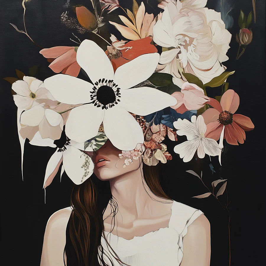 Rozjaśnij swoją przestrzeń tym wspaniałym wydrukiem na płótnie przedstawiającym kobietę ozdobioną kaskadą kwiatów. To tak, jakby zebrała wszystkie kwiaty z ogrodu i powiedziała: “Bawmy się!”. Kontrast ciemnego tła sprawia, że te żywe kwiaty są wyskakujące, prawie jakby wyciągały rękę do widza. Wyobraź sobie, że przechodzisz obok tego piękna każdego dnia – może to wywołać uśmiech lub dwa. Idealny do salonu lub przytulnego kącika, ten kawałek szepcze urok natury i nutkę kaprysu. Podaruj swojej ścianie odrobinę magii sztuki nowoczesnej i pozwól jej rozbudzić rozmowy!