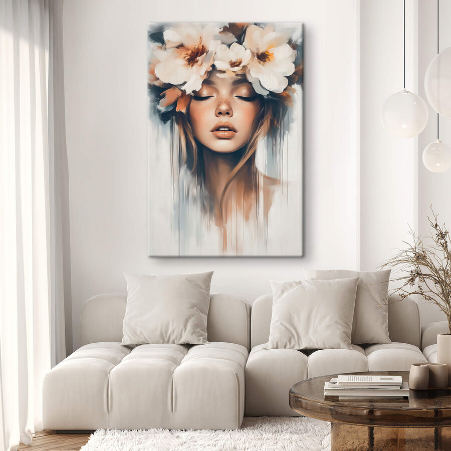 Rozjaśnij każdą przestrzeń dzięki temu urzekającemu obrazowi na płótnie “Kobieta z kwiatami we włosach”. Zaprasza on do świata, w którym natura i piękno łączą się bez wysiłku. Wyobraź sobie, że ten obraz zdobi Twój salon lub sypialnię – te delikatne kolory i marzycielski wyraz twarzy mogą pobudzić do rozmowy lub stworzyć uspokajającą atmosferę podczas relaksu po długim dniu. To jak wniesienie odrobiny słońca do wnętrza! Każde spojrzenie może przypomnieć ci o docenieniu prostych radości życia, tak jak spacer po kwitnącym ogrodzie. Idealny dla każdego, kto kocha odrobinę sztuki z sercem.
