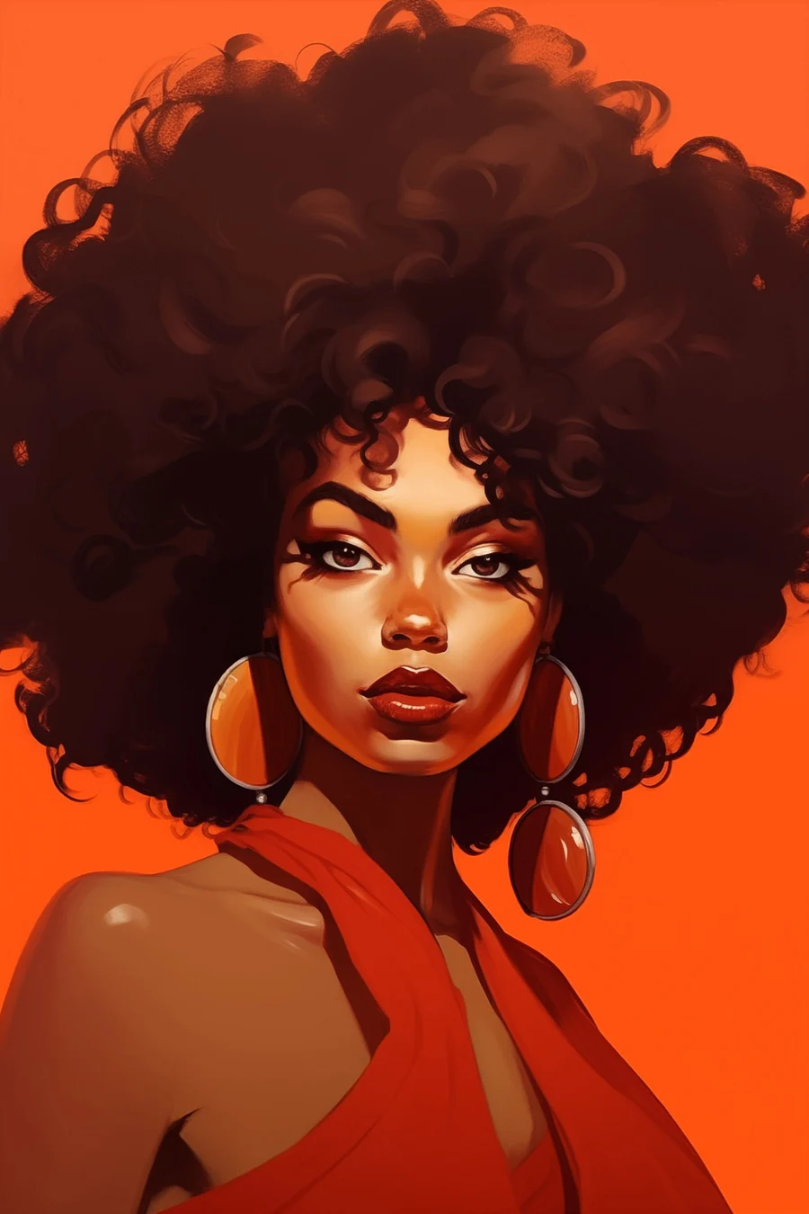 Bring a burst of personality to your space with this captivating canvas print of a woman sporting a big, curly afro and bold earrings. The rich colors and striking details make it feel alive, almost like she’s about to share a story with anyone who glances her way. Imagine having her grace your living room or home office—it’s like an instant mood booster. She radiates confidence and charm, right? Perfect for sparking conversations or just adding a fun vibe to dull walls. Trust this artwork to make any room pop. It’s not just decor; it’s a lively presence that can brighten even the gloomiest days. Plus, who doesn’t love a little extra sass in their ambiance?