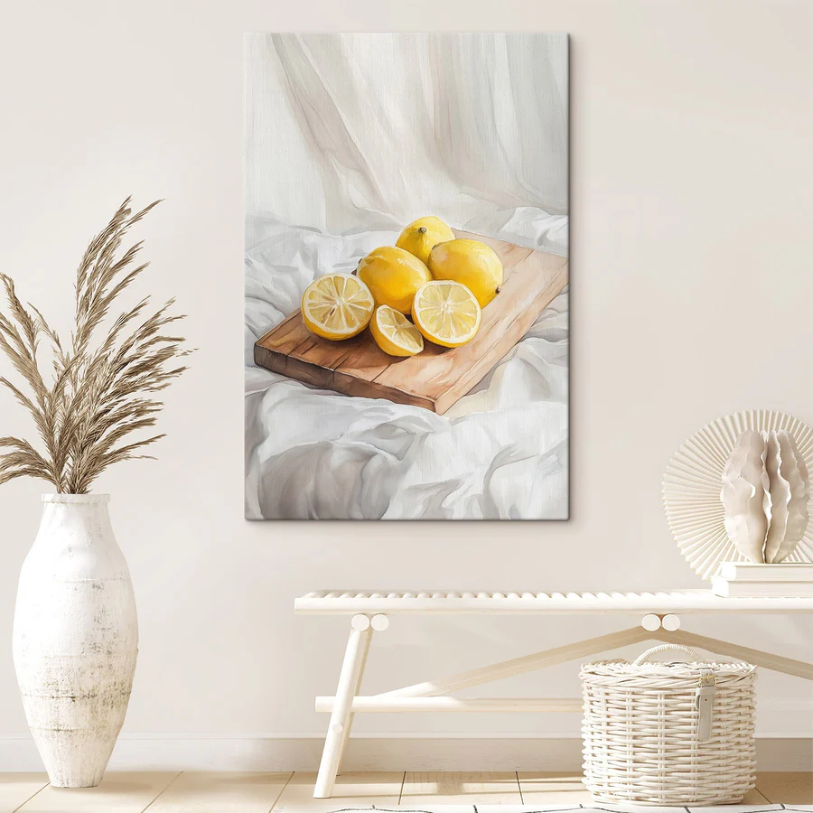 Rozjaśnij każdą przestrzeń dzięki temu wspaniałemu drukowi na płótnie przedstawiającemu wesołą grupę cytryn wylegujących się na desce do krojenia. To jak mały kawałek słońca na ścianie! Wyobraź sobie, że wchodzisz do pokoju i czujesz ten radosny kolor, który natychmiast podnosi Cię na duchu. Idealny dla tych, którzy kochają odrobinę świeżości – czy to w kuchni, czy w jadalni – to dzieło sztuki wnosi odrobinę zabawnego uroku i ciepła. Co więcej, może nawet zainspirować do stworzenia stoiska z lemoniadą w salonie – kto nie lubi trochę pomarzyć? Niech ta eksplozja cytrusów stworzy przyjazną atmosferę, zachęcając do uśmiechów i pogawędek przy jedzeniu i piciu. Prawdziwy początek rozmowy!