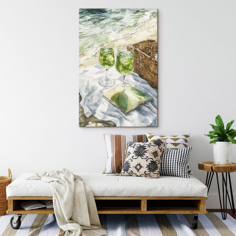 Wprowadź odrobinę spokoju do każdego pomieszczenia dzięki temu wspaniałemu wydrukowi na płótnie w stylu akwareli. Wyobraź sobie: dwa kieliszki orzeźwiającego wina, przytulny kosz piknikowy i książka, która tylko czeka, aby ją otworzyć, a wszystko to na tle delikatnych fal. To jak zaproszenie do spędzenia leniwego popołudnia, wylegując się w słońcu, delektując się każdym łykiem i każdym słowem. Idealny do kuchni, jadalni lub każdego miejsca, w którym odpoczywasz, ten obraz budzi radość, nostalgię, a może nawet chęć do podróży. To dzieło sztuki, które szepcze: „Zrób sobie przerwę, zasługujesz na to!”. Dzięki delikatnym kolorom i zachęcającej scenerii z pewnością wywoła uśmiech na twarzy każdego i sprawi, że zaczniesz marzyć o pikniku nad brzegiem morza. Idealnie niedoskonały, tak jak życie.