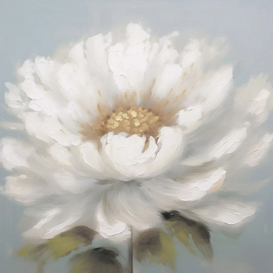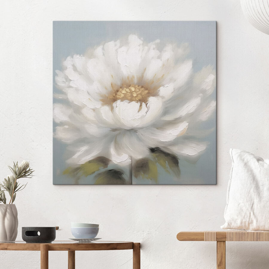 Rozjaśnij każde pomieszczenie za pomocą tego pięknego wydruku na płótnie przedstawiającego oszałamiający biały kwiat ze słonecznym żółtym środkiem. To jak rozkwit marzeń – ciepłe, delikatne wibracje, które tylko czekają, aby zadomowić się w Twojej przestrzeni. Wyobraź sobie to piękno wiszące nad przytulnym kącikiem do czytania lub nawet w kuchni, zachęcające do rozmowy przy porannej kawie. Delikatne kolory i marzycielskie tło tworzą zachęcającą atmosferę, idealną do relaksu. Jest to jeden z tych elementów, które szepczą spokój, jednocześnie robiąc odważne oświadczenie. Kto nie chciałby odrobiny uroku natury w swoim domu?