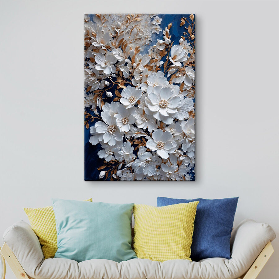 Odmień każdą przestrzeń dzięki temu oszałamiającemu drukowi na płótnie z delikatnymi kwiatami na głębokim tle. To jak przeniesienie ogrodu do domu, ale bez konewki i uciążliwych owadów. Wyobraź sobie, że wchodzisz do swojego pokoju i każdego dnia witają Cię te eleganckie kwiaty – natychmiastowa radość!