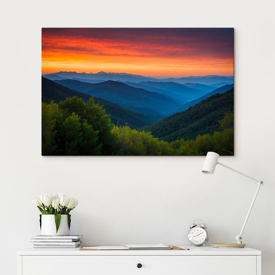 Przekształć dowolną przestrzeń w przytulny azyl dzięki temu wspaniałemu drukowi na płótnie przedstawiającemu zapierający dech w piersiach krajobraz gór i drzew. Wyobraź sobie ciepłe odcienie zachodu słońca rozlewające się po niebie, rzucające delikatne cienie na falujące wzgórza. To jak mały kawałek natury, który można zabrać do domu – nie są wymagane buty turystyczne! Idealny do salonu lub cichego zakątka, w którym popijasz poranną kawę i marzysz. To prawie tak, jakby góry zapraszały do ucieczki od codziennej harówki. Po prostu powieś go i pozwól swoim zmartwieniom zniknąć w oddali – poważnie, kto potrzebuje stresu, gdy wokół jest sztuka natury?