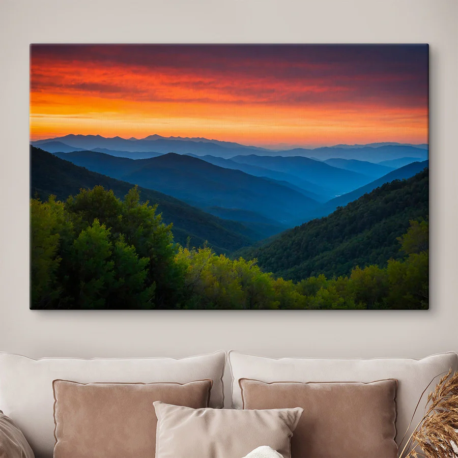 Przekształć dowolną przestrzeń w przytulny azyl dzięki temu wspaniałemu drukowi na płótnie przedstawiającemu zapierający dech w piersiach krajobraz gór i drzew. Wyobraź sobie ciepłe odcienie zachodu słońca rozlewające się po niebie, rzucające delikatne cienie na falujące wzgórza. To jak mały kawałek natury, który można zabrać do domu – nie są wymagane buty turystyczne! Idealny do salonu lub cichego zakątka, w którym popijasz poranną kawę i marzysz. To prawie tak, jakby góry zapraszały do ucieczki od codziennej harówki. Po prostu powieś go i pozwól swoim zmartwieniom zniknąć w oddali – poważnie, kto potrzebuje stresu, gdy wokół jest sztuka natury?