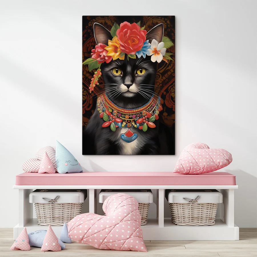 Transform your space with this delightful canvas print featuring an adorable cat wearing a flower crown. Seriously, what’s not to love? This little feline fashionista is dressed to impress, rocking a bunch of colorful blooms that could brighten even the gloomiest day. Imagine it hanging on your wall, instantly making any room feel a bit more cheerful and a whole lot quirkier.