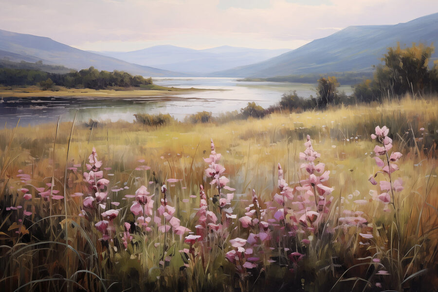 Wyobraź sobie: delikatny powiew wiatru, słodki zapach kwiatów i widok na jezioro, który sprawia, że zapominasz o wszystkich zmartwieniach. Obraz „Pole kwiatów nad jeziorem” na płótnie oddaje tę idealną chwilę. Urocze różowe kwiaty tańczące na pierwszym planie i spokojna tafla wody odbijająca delikatne barwy w tle sprawiają, że obraz ten jest jak mini ucieczka na Twojej ścianie. Wyobraź sobie, że zapraszasz przyjaciół – ten obraz zainspiruje rozmowy o marzeniach i spacerach na łonie natury. Odrobina spokoju i plama koloru – to rodzaj sztuki, która wywołuje uśmiech za każdym razem, gdy na nią spojrzysz. Idealna do rozjaśnienia przytulnego kącika lub podkreślenia charakteru salonu. Kto nie chciałby mieć w domu kawałka wspaniałej przyrody?