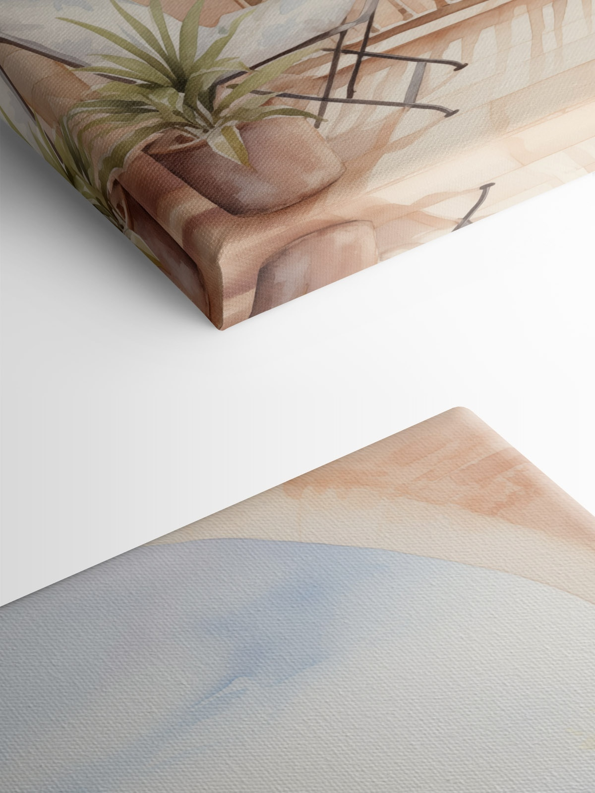 Wyobraź sobie, że wychodzisz na uroczy balkon, na którym miasto rozciąga się pod ciepłym słońcem. Ten akwarelowy obraz doskonale oddaje ten zachwycający moment. Dzięki delikatnym pociągnięciom pędzla, które łączą miękkie pastele, obraz zachęca do marzeń przy filiżance kawy lub herbaty. Rośliny rozlewające się po doniczkach wnoszą odrobinę radości, jakby zapraszając na zewnątrz. To tak, jakby mieć na ścianie mały kawałek osobliwego europejskiego wypadu, który jednocześnie wywołuje radość i pragnienie wędrówki. Idealny do rozjaśnienia każdego pomieszczenia – kto nie chce codziennego przypomnienia, aby zatrzymać się i docenić piękno?