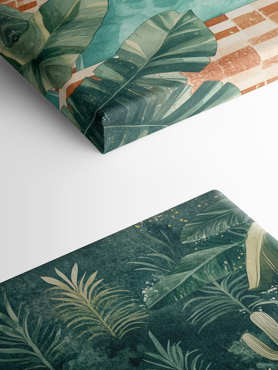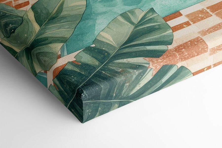 Zanurz się w kawałku raju dzięki temu żywemu drukowi na płótnie, przedstawiającemu spokojny basen otoczony zachęcającymi leżakami i deskami surfingowymi, które tylko czekają na przygodę. Bujna zieleń dodaje orzeźwiającego akcentu, dzięki czemu idealnie nadaje się do marzeń na jawie lub planowania następnego wypadu na plażę. Wyobraź sobie relaks przy basenie z chłodnym napojem, wygrzewając się w promieniach słońca, podczas gdy subtelne dźwięki natury tworzą atmosferę relaksu. Ten mebel to nie tylko dekoracja; przenosi on w letni stan umysłu, niezależnie od tego, czy znajduje się w salonie, czy w przytulnym kąciku do czytania. Kto by nie chciał takiej atmosfery?