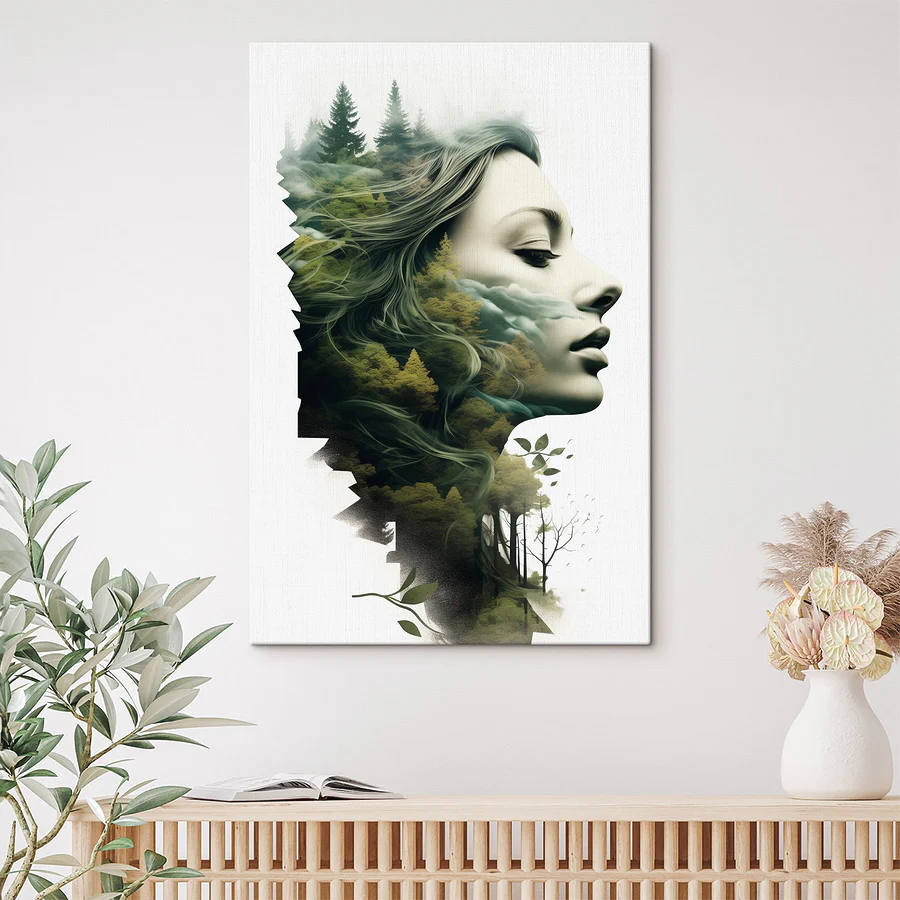 Wejdź w senną ucieczkę z tym czarującym wydrukiem na płótnie przedstawiającym twarz kobiety splecioną z drzewami i chmurami. To tak, jakby natura wyszeptała jej sekret, którym nie mogła się nie podzielić. Idealna dla każdego, kto kocha odrobinę kaprysu w swojej przestrzeni, ta grafika oddaje spokój, jednocześnie wzbudzając ciekawość. Wyobraź sobie, że wisi w przytulnym kąciku do czytania – miękkie światło wpadające do środka, ciepły kubek w dłoni. Można odnieść wrażenie, że natura jest tuż obok, zapraszając do chwil refleksji i marzeń. To dopiero początek rozmowy!