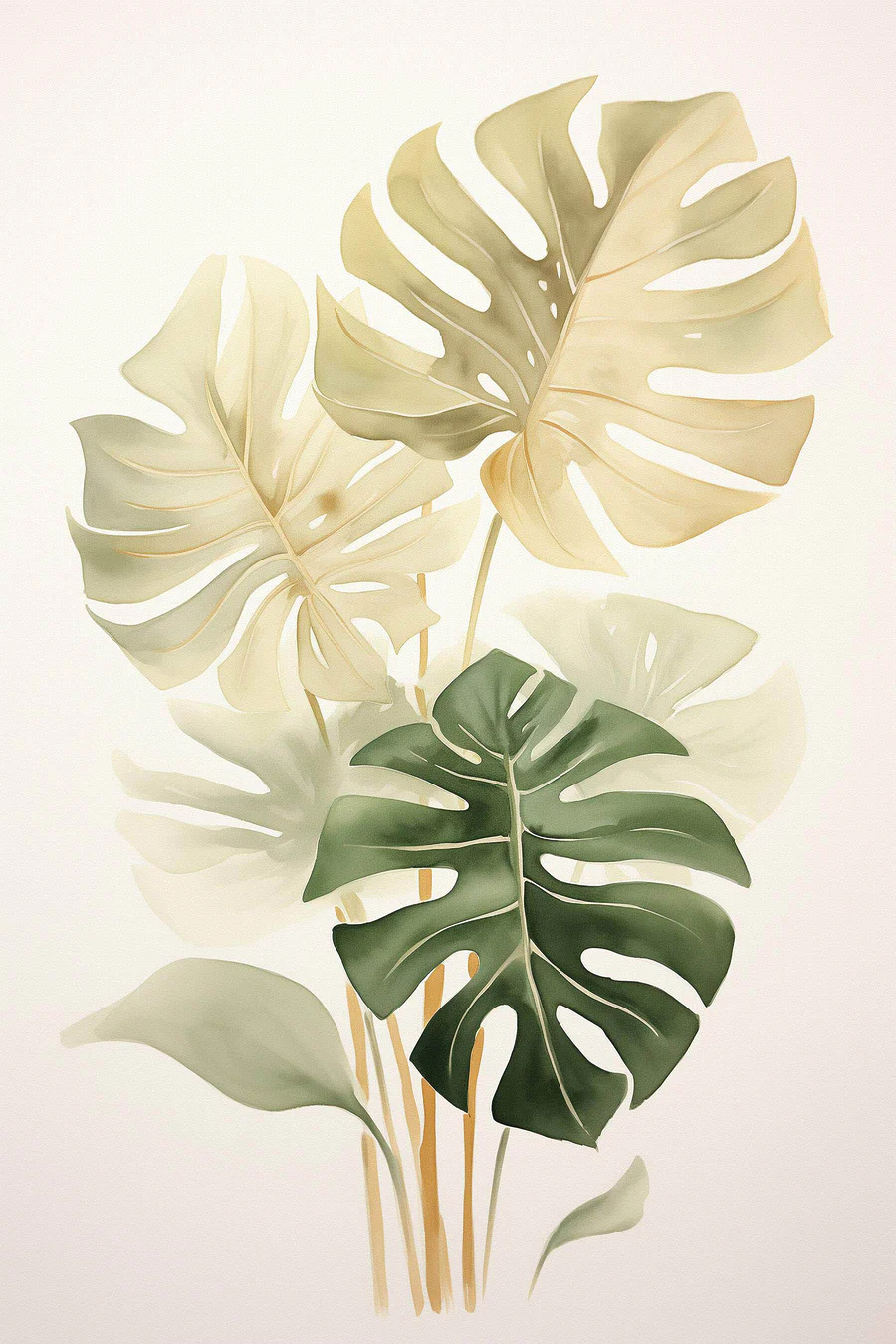 Wnieś powiew świeżości do każdego pomieszczenia dzięki temu wspaniałemu drukowi na płótnie przedstawiającemu grupę żywych liści na kojącym białym tle. To jak mini tropikalny wypad do domu, bez piasku w butach. Wyobraź sobie, że budzisz się z tym urokiem, codziennym przypomnieniem, że piękno natury może rozjaśnić twoją przestrzeń i nastrój. Delikatna zieleń i subtelne odcienie wprowadzają poczucie spokoju, idealne do stworzenia przytulnego kącika do czytania lub ożywienia samotnej ściany. Znajomi mogą pomyśleć, że spędziłeś weekend w ogrodzie botanicznym. Kto potrzebuje wakacji, gdy ściany mogą uciec do raju?