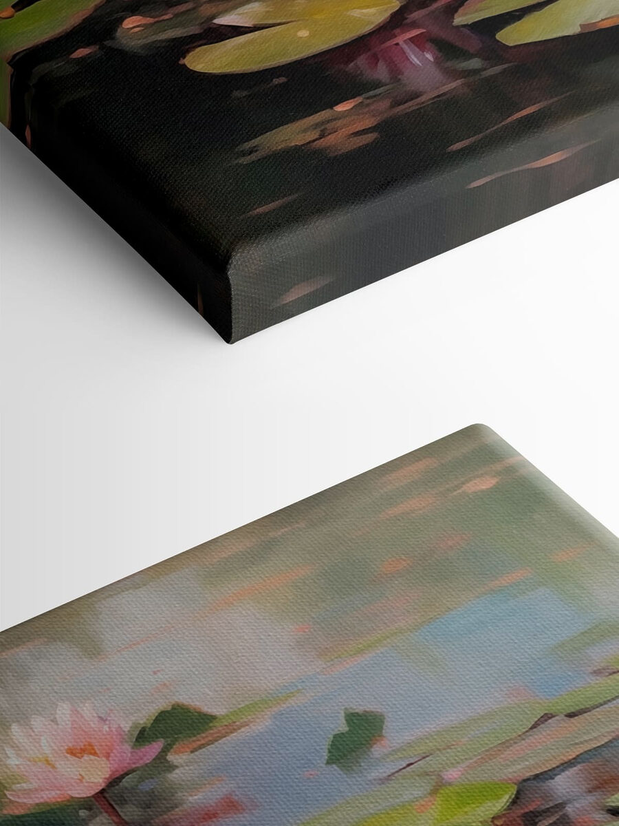 Zanurz się w spokojnej ucieczce z tym czarującym obrazem na płótnie, przedstawiającym różowe kwiaty delikatnie osadzone na płatkach lilii. Szepcze opowieści o spokojnych popołudniach, gdzie natura tańczy w miękkich falach, a światło słoneczne migocze przez liście. Wyobraź sobie, że ten obraz zdobi twoją ścianę, natychmiast tworząc przytulną atmosferę – idealną do marzeń na jawie lub popijania ciepłej herbaty. Każde spojrzenie zachęca do chwili spokoju, sprawiając, że trudno jest oprzeć się kradzieży odrobiny ciszy, aby po prostu cieszyć się pięknem. To tak, jakby przenieść kawałek spokojnego życia nad stawem prosto do swojego domu!